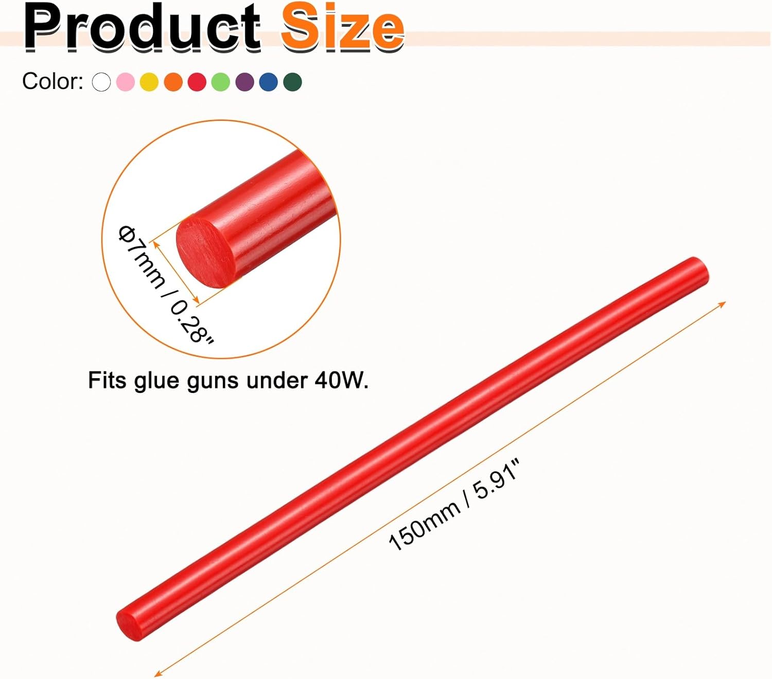 • Size - Hot glue sticks size: 7 x 150mm / 0.28 x 5.91 inch (D*L); Curing time: 10–15 seconds; Working temperature: 150°C (302°F); Softening point: 75°C (167°F).