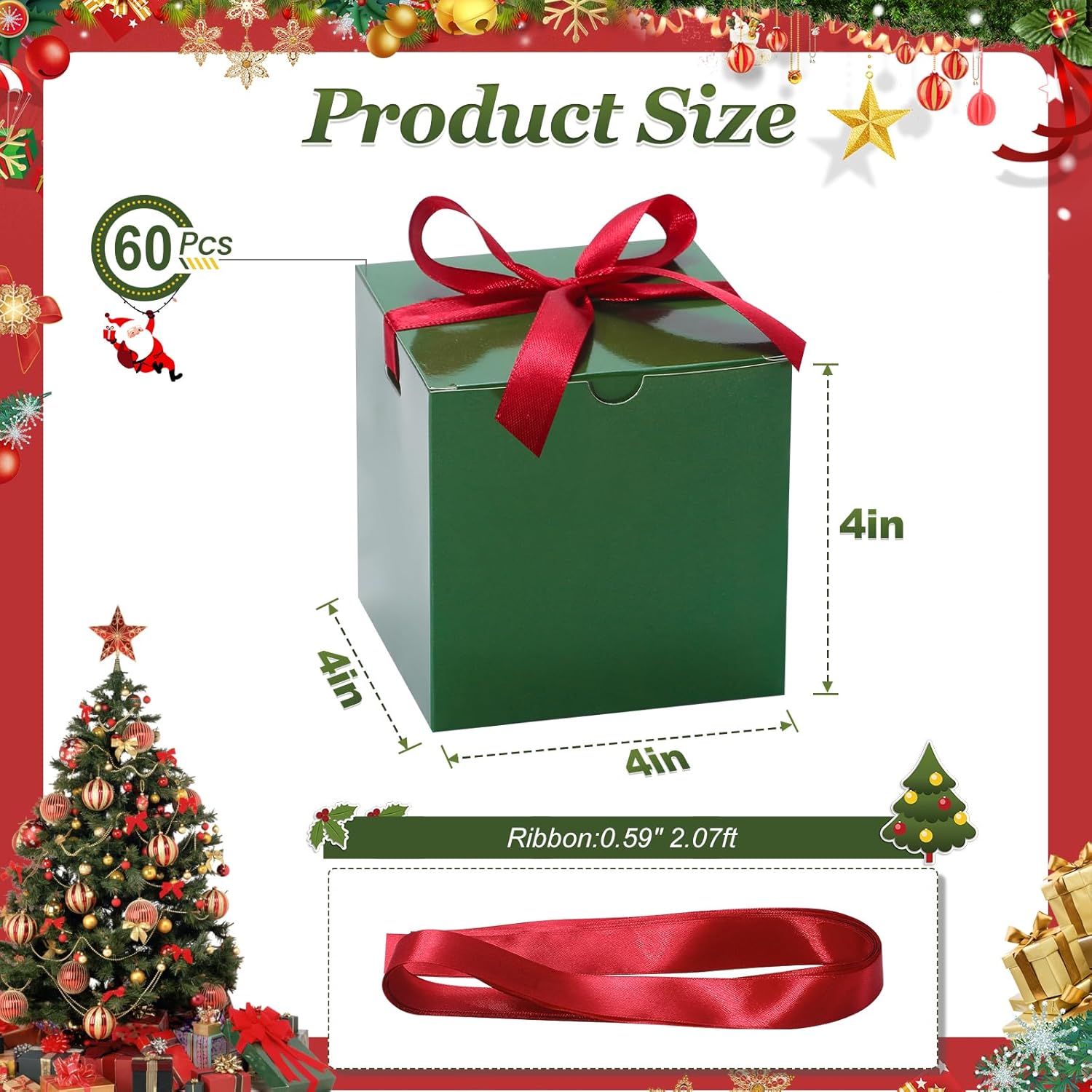 DOYIDE Small Gift Boxes, 60 Pcs 4x4x4 Inch Green Elegant Paper Box with Ribbons, Party Favor Boxes for Candy Cupcake Christmas Wedding Baby Shower Bridesmaids Birthday