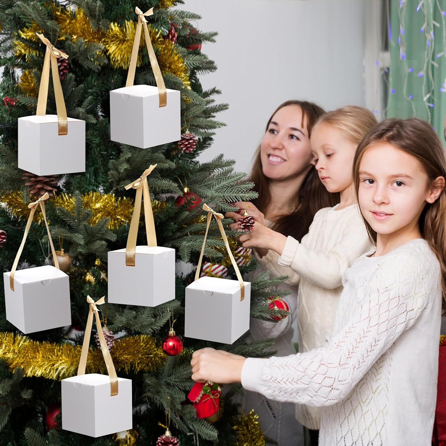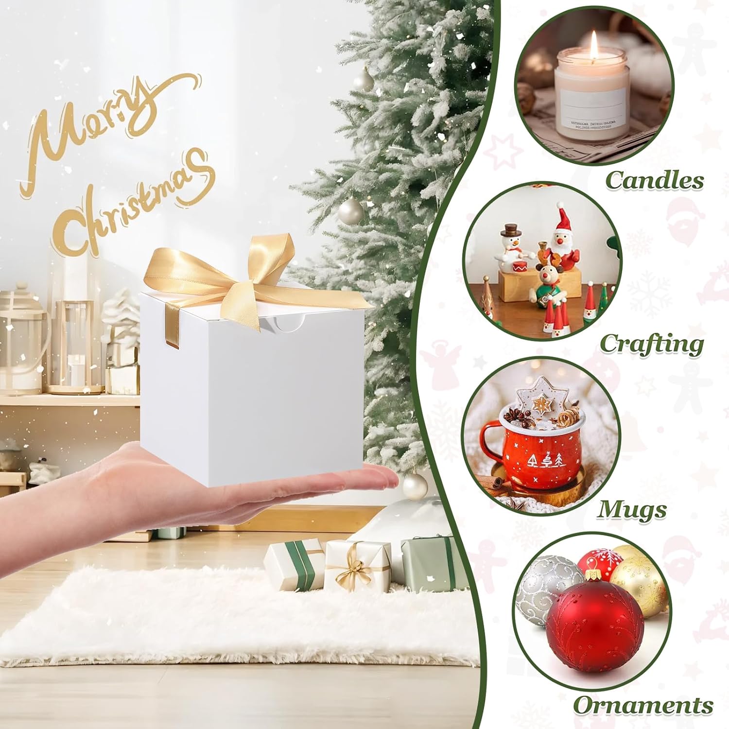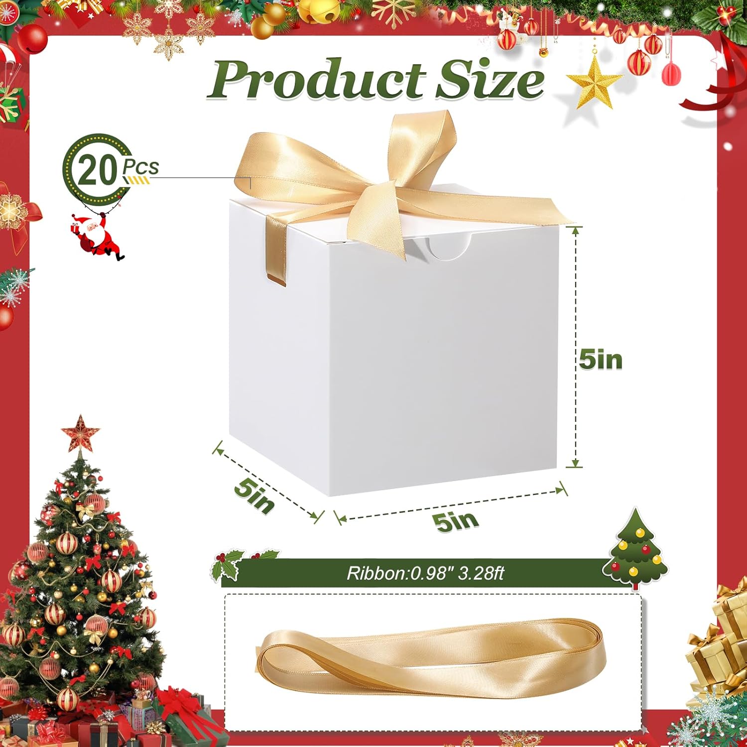 DOYIDE Small Gift Boxes, 20 Pack 5x5x5 Inch White Elegant Paper Boxes with Ribbons, Crafting, Christmas Gift Box Wedding Party Favor, Cupcake, Candy, Bridesmaids Proposal Box