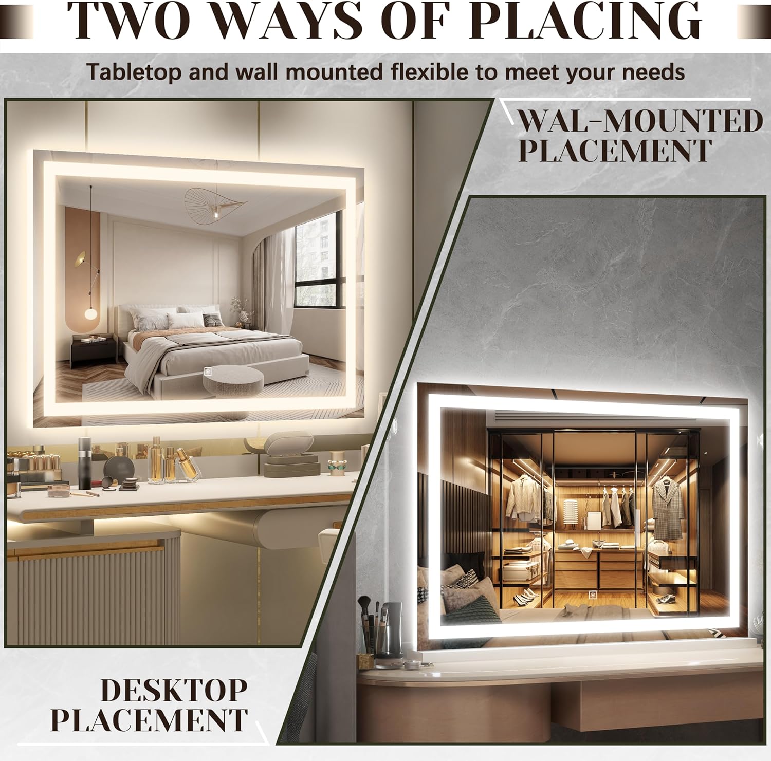 • 【Extra Large & Space - Saving Design】 Our LED vanity mirror has a 30% larger viewing area than standard mirrors, allowing you to see full-body outfits and makeup details at a glance. The 31" x 22" size also features a space - saving dual - installation design. It comes with a detachable base, so you can use it on the desktop or mount it on the wall as needed.