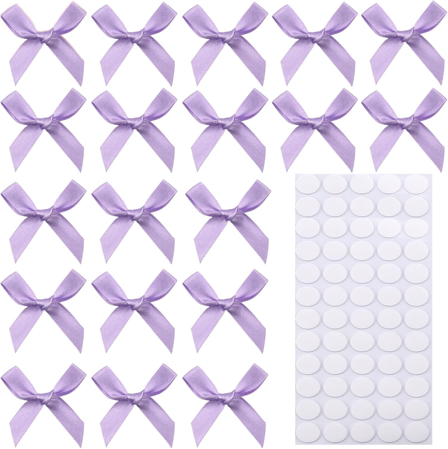 60pcs 1.7" Mini Lavender Ribbon Bows Decor – Small DIY Satin Light Purple Bows for Crafts, Little Bows for Gift Wrapping, Tiny Bow Stickers for Note Card Baby Shower cake and Candle Decorations
