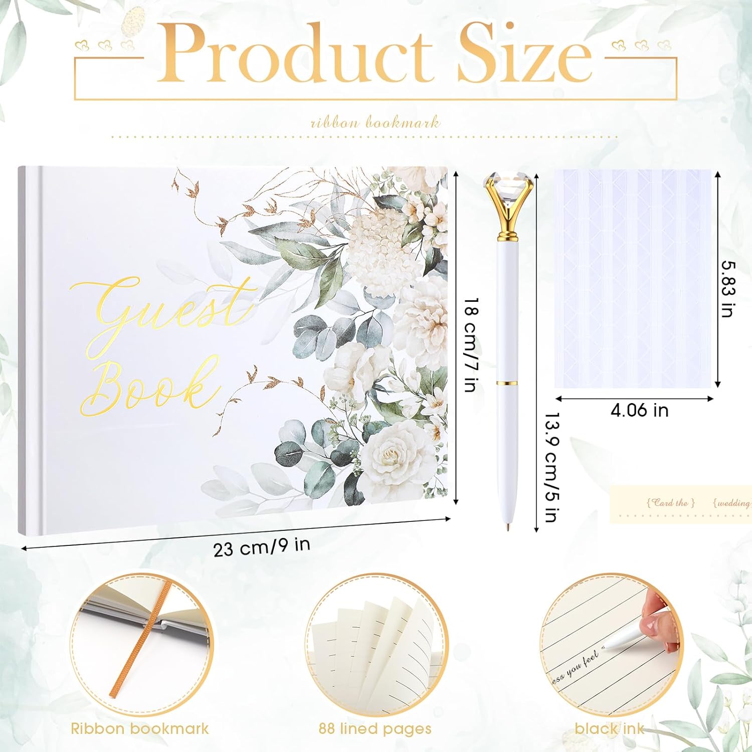 • Elegant Craftsmanship: embrace timeless elegance with wedding sign book, beautifully adorned with white roses, green leaves and golden printing, charming and serve as both a treasured keepsake and tabletop decor within your home for years to come; It displays the warm wishes and memories shared by your guests while also decorating your places