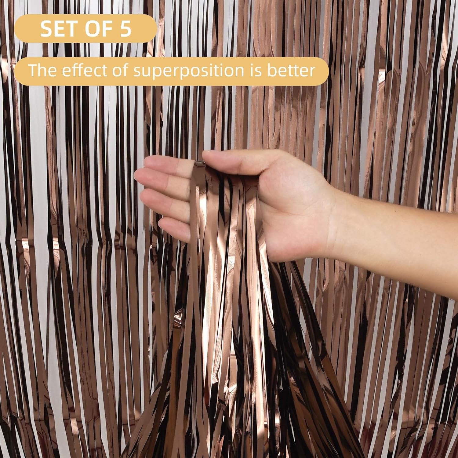 • {Perfect Size}: Set of 5, each pack curtain size is 3.2ft x 8.2ft (1m x 2.5m). The foil curtain is 8 feet long, the perfect length size covers a wide area, and can cover the entire area that needs to be modified. Which is great to use for indoor or outdoor perfect decoration to create a perfect decorative backdrop.