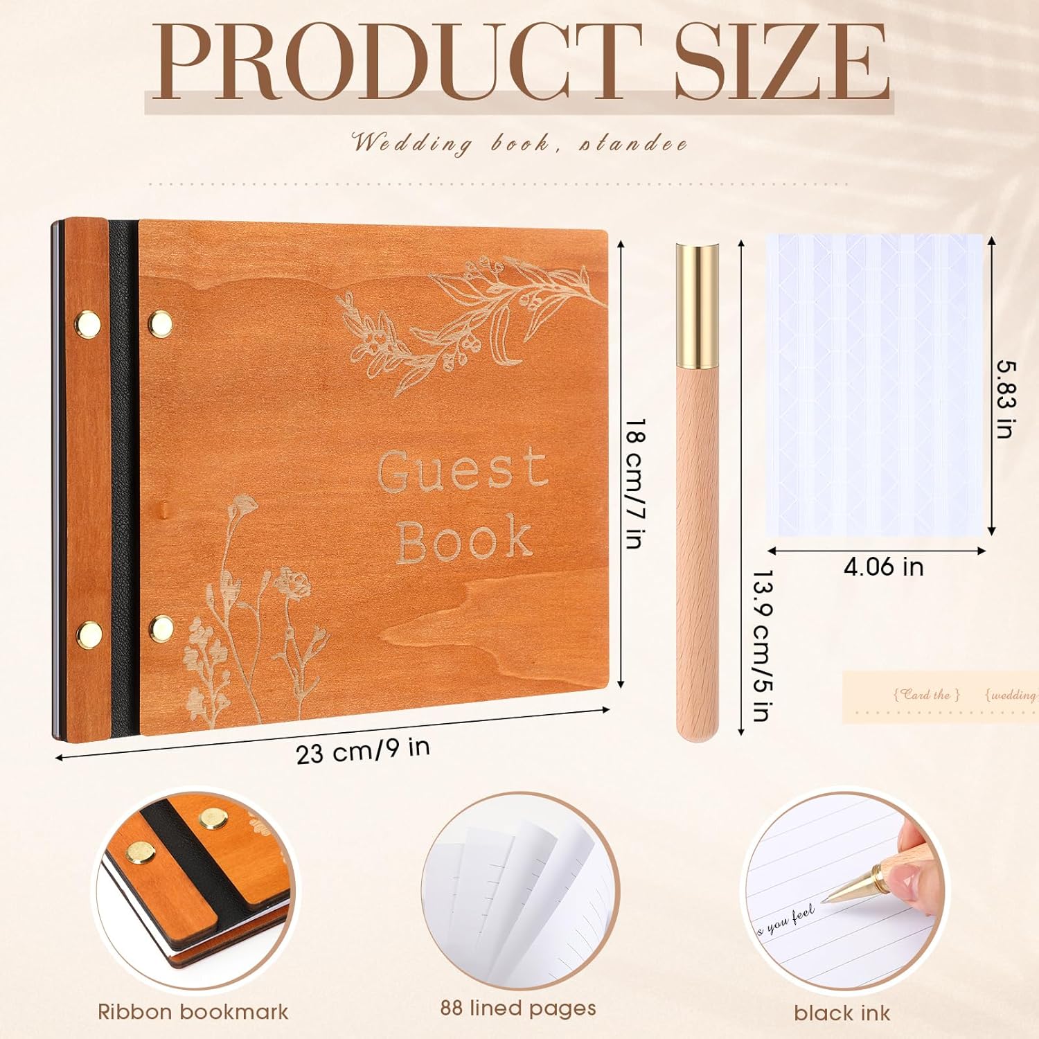 • Practical and Thoughtful: each wedding guest sign in book has a wooden front cover, a silk ribbon bookmark, 88 lined pages, and durable sewn binding, ensuring ample writing space and long-lasting use; Complete with photo corner stickers, it secures snapshots alongside heartfelt messages from your guests