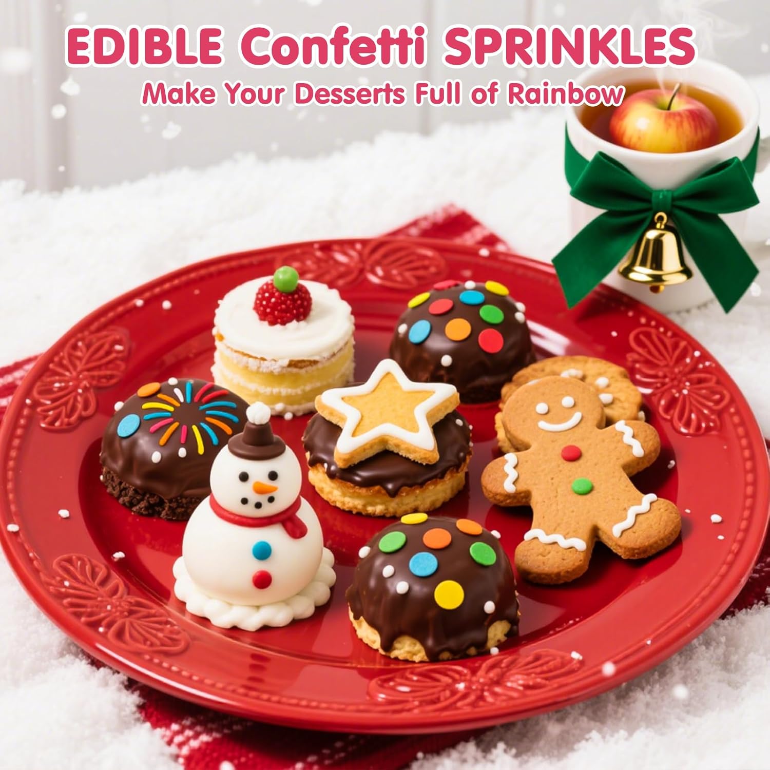 • Easy to Use:These Rainbow-themed toppings are a sprinkle mix of jimmies that turn your desserts into a one-of-a-kind masterpiece perfect for Birthdays, Christmas cookies, Christmas cakes, holiday desserts, Gingerbread houses, graduations, baby showers, holidays other occasions.Delight your guests with festive holiday sweet treats that make your party table stand out.