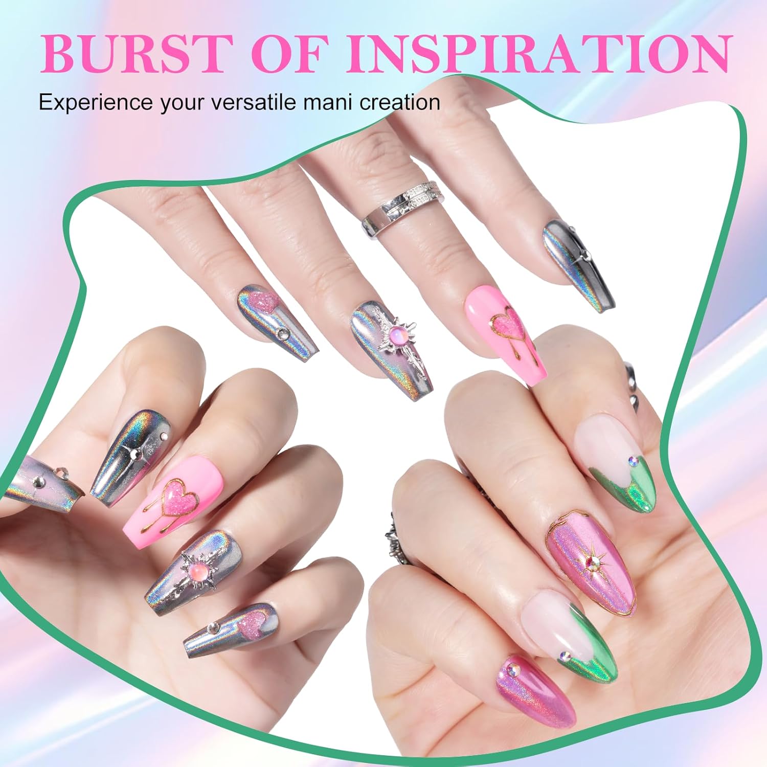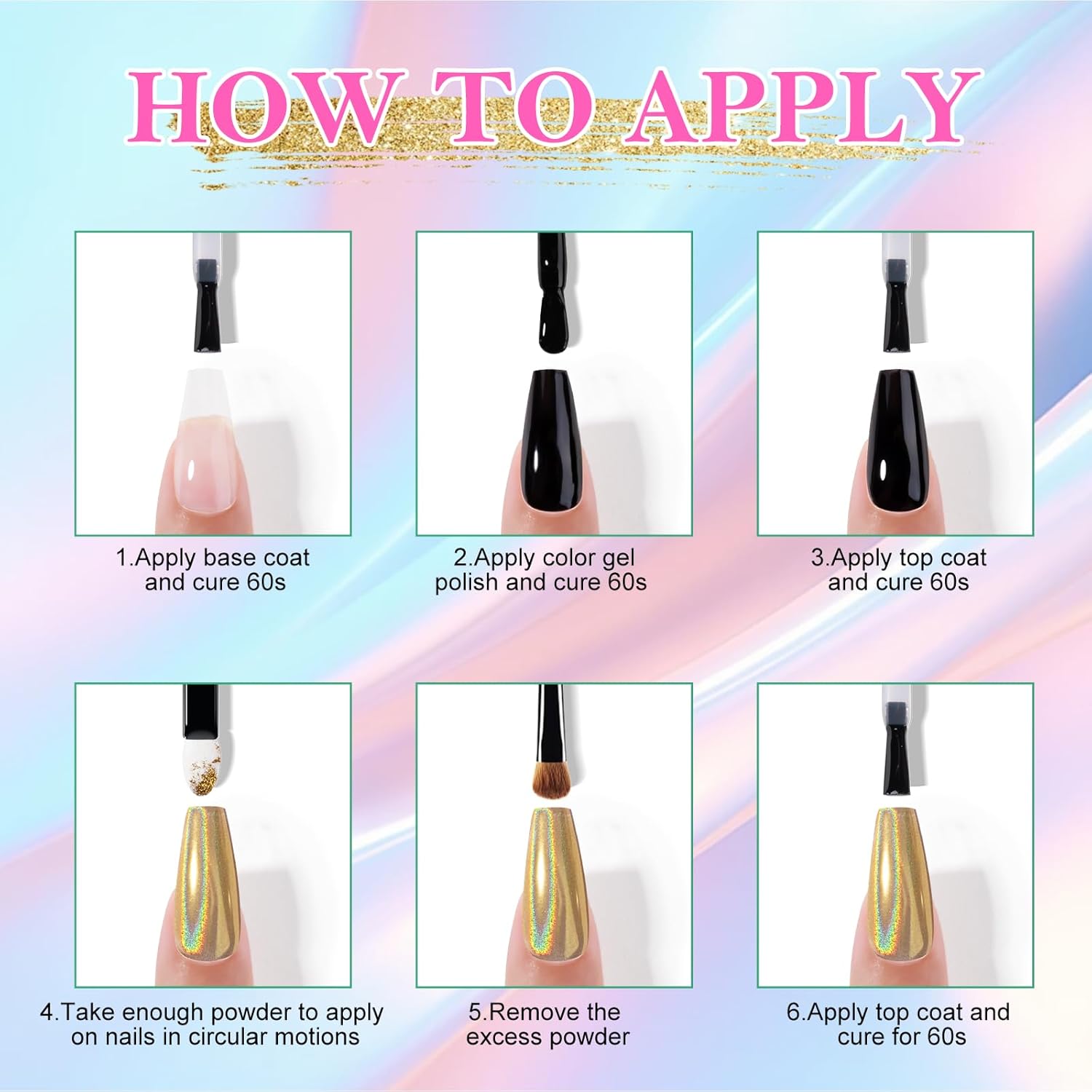 • Versatility: These powders work with gel polishes (color gel, gel base, and gloss gel top). Some traditional polishes may be compatible. Suitable for natural, UV gel, acrylic, or artificial nails. Application is simple. Easily enhance nail art with rhinestones, nail films, or other accessories