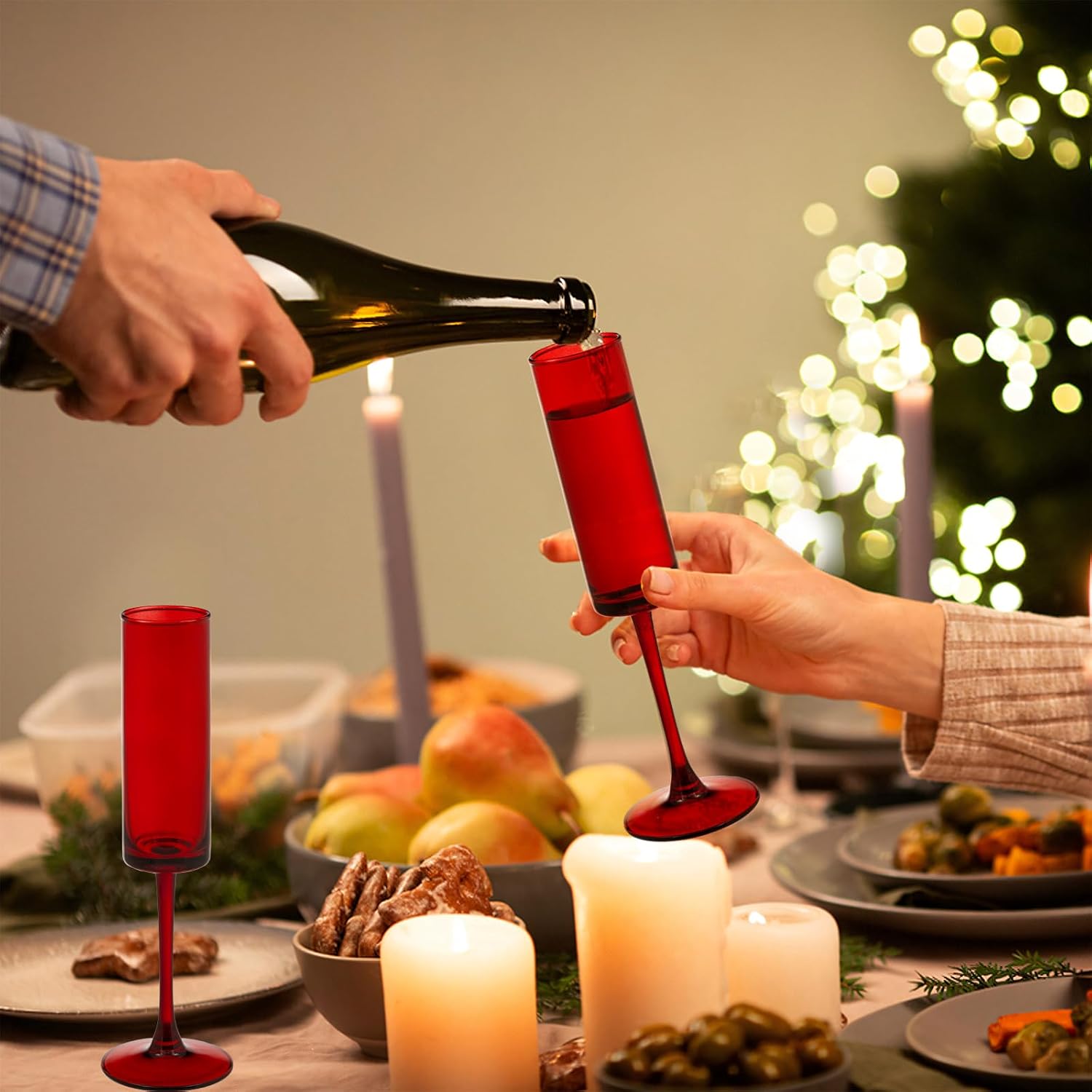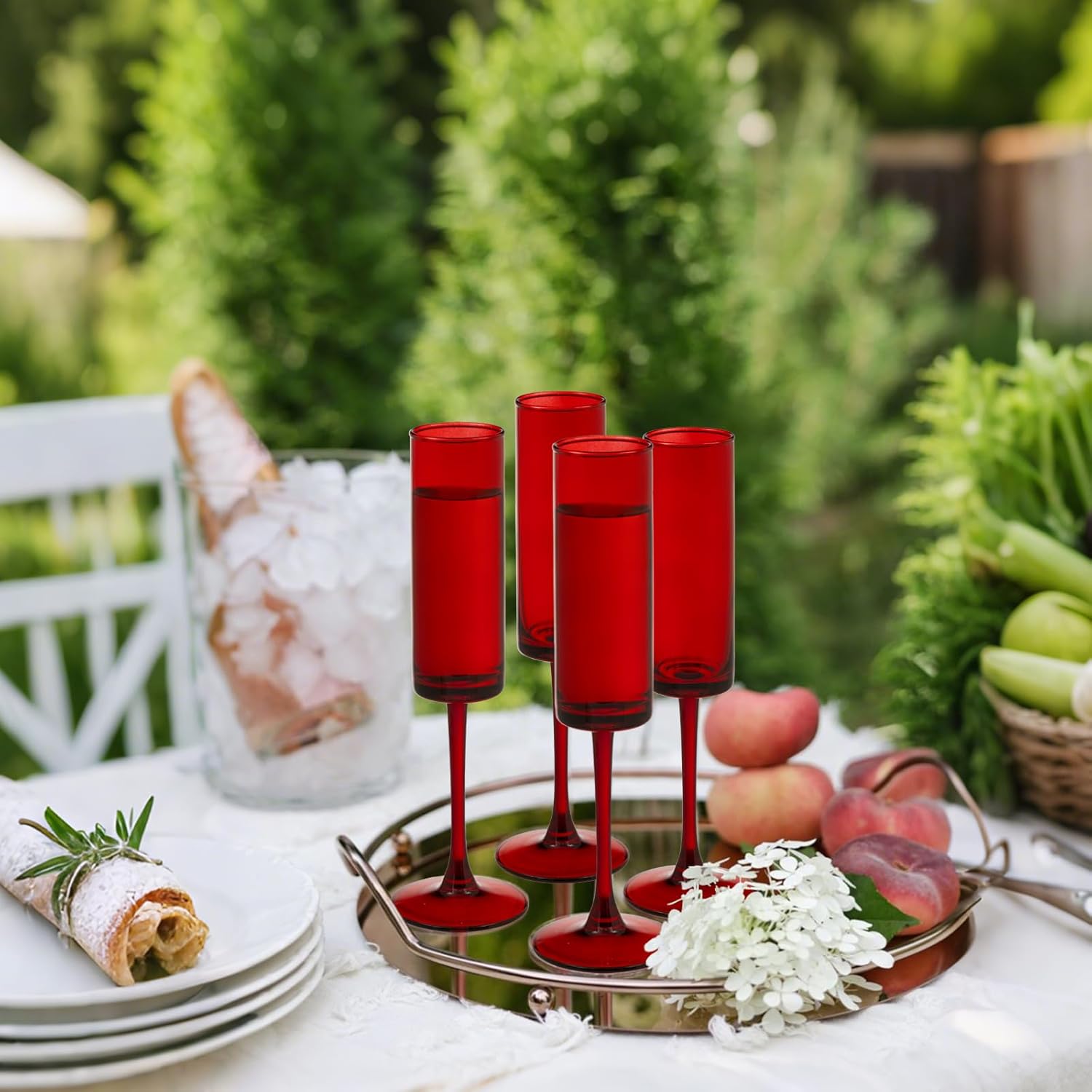 24 Pieces Red Champagne Flutes 6 OZ Straight Sided Wine Glasses Champagne Long Stem Drinking Colored Glasses,Set of 24 Hand Blown Champagne Flutes Goblets for Wedding Cocktail Cups,Cava, Prosecco