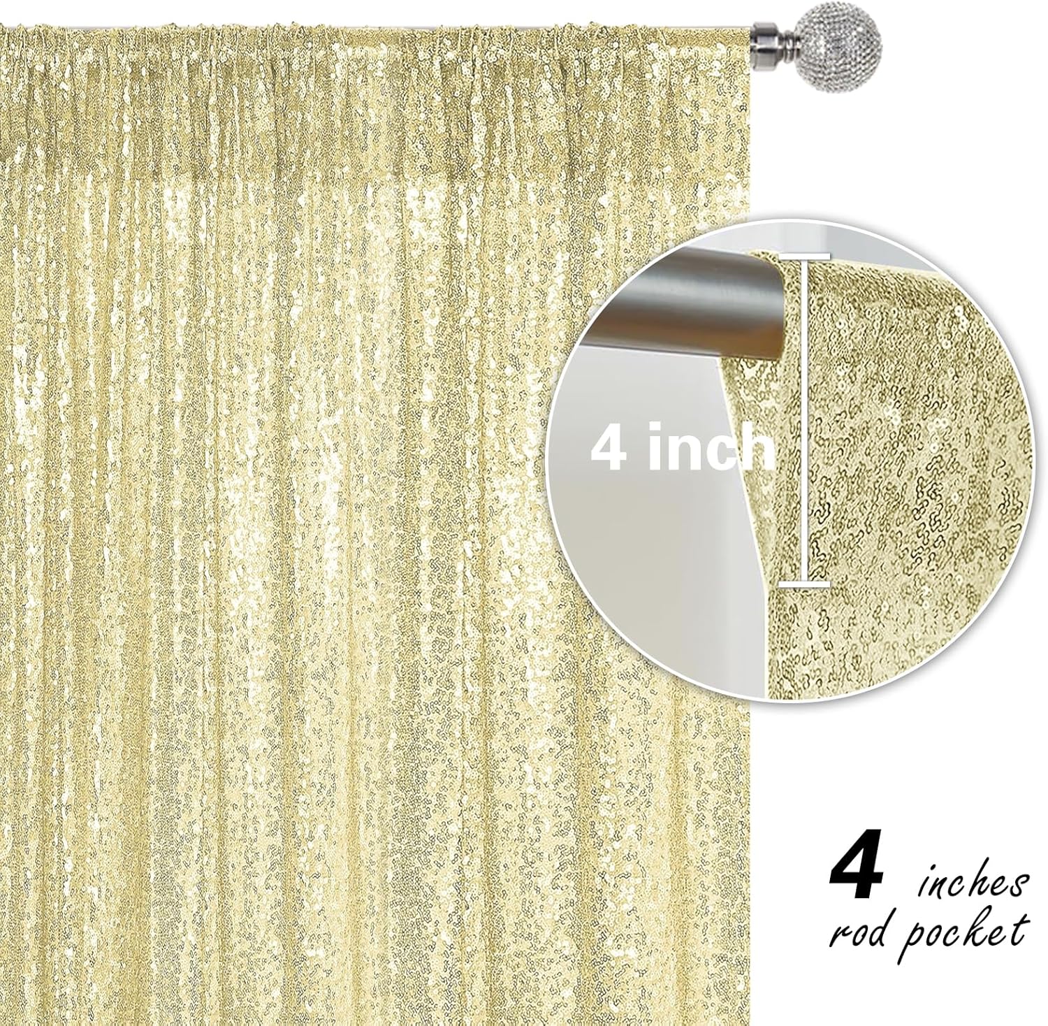 • Package Include: 4Pcs 2FT Wide X 8FT Height sequin backdrop curtain with a 4-inch wide rod pocket on the top, which is easy to install.