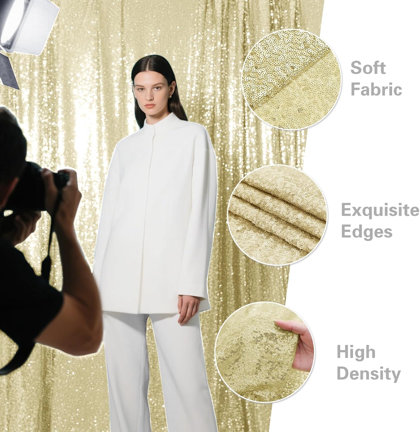 Champagne Sequin Backdrop Curtain 2 Pieces 2FTx8FT Glitter Photography Backdrop for Party Wedding Birthday Christmas Decorations