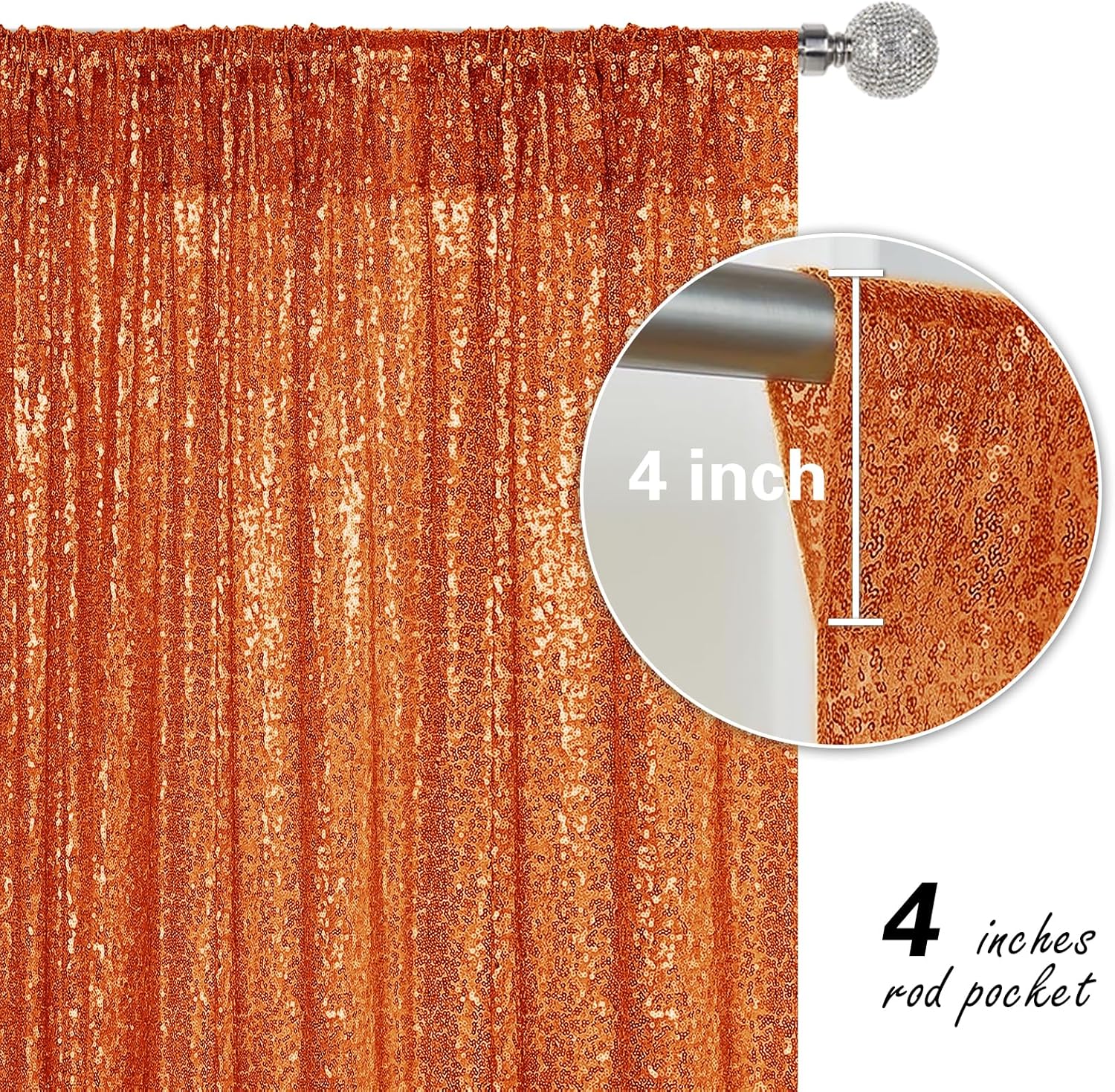 Orange Sequin Backdrop Curtain 4 Pieces 2FTx8FT Glitter Photography Backdrop for Party Wedding Birthday Christmas Decorations
