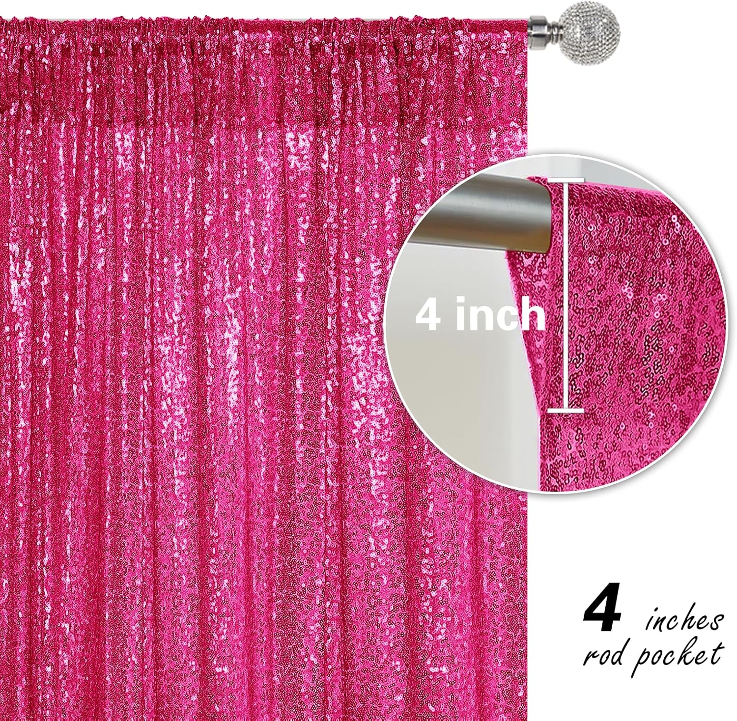 • Package Include: 2Pcs 2FT Wide X 8FT Height sequin backdrop curtain with a 4-inch wide rod pocket on the top, which is easy to install.