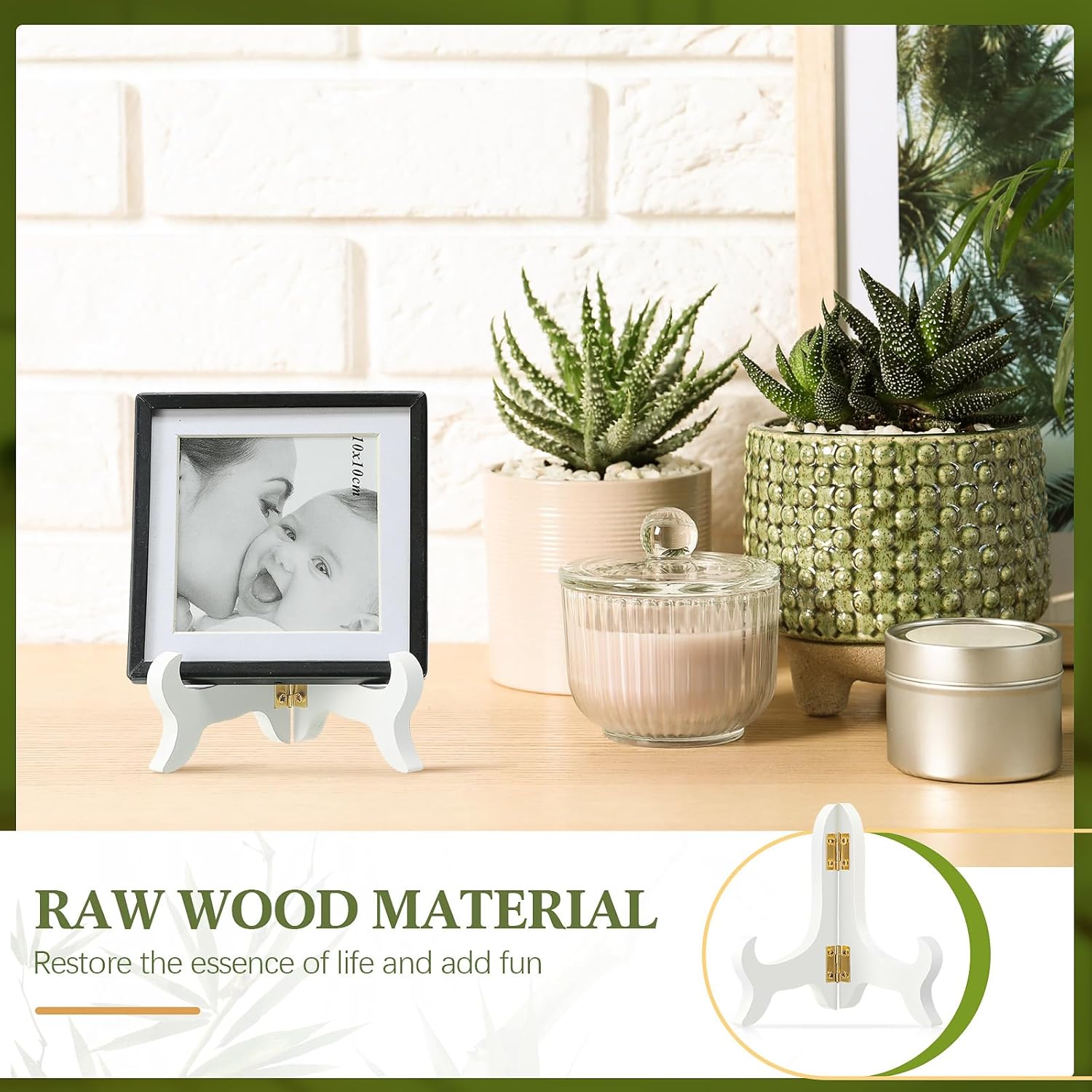 Tatuo 4 Packs Wooden Display Stand Decorative Plate Stands for Display Picture Frame Holder Easels(White,5 Inch)