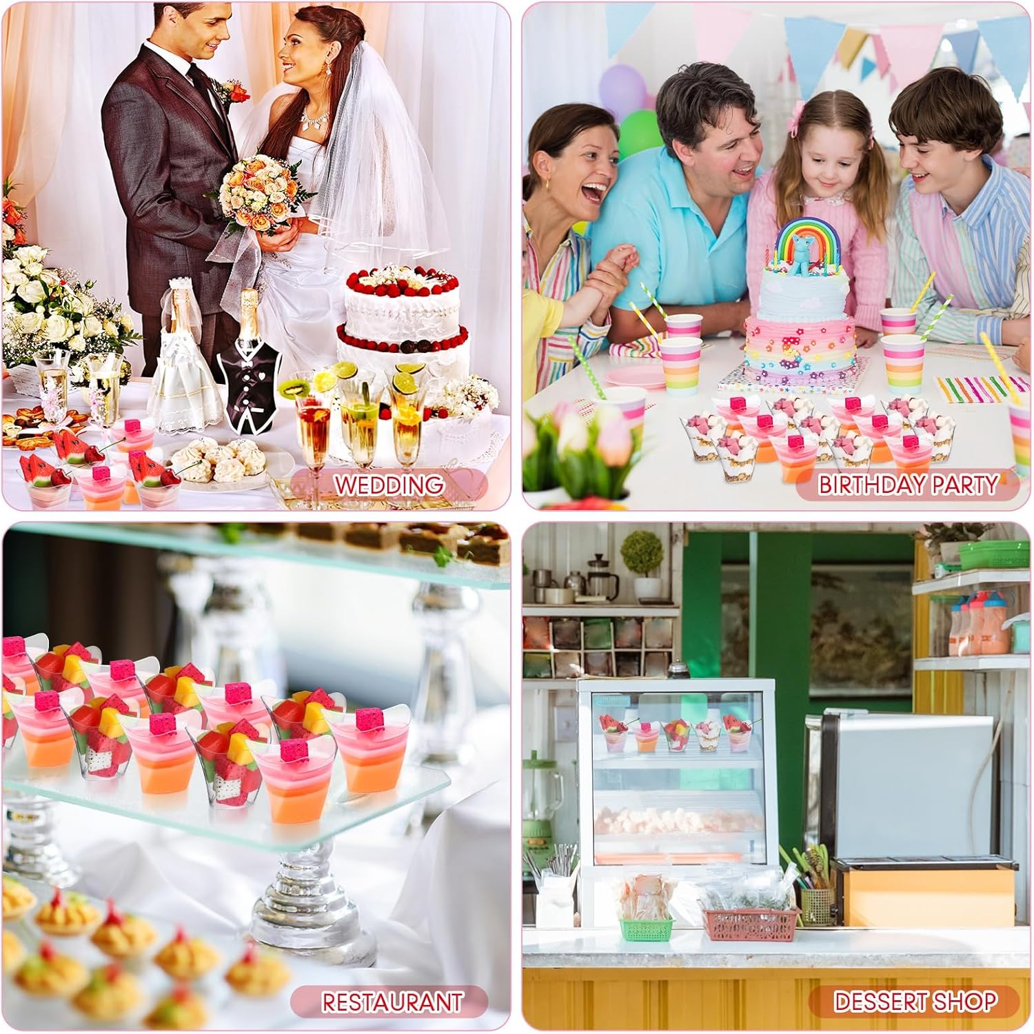 • Various Occasions: the mini dessert cup can be applied in weddings, engagement parties, baby showers, outdoor pool parties, corporate banquets, barbecues, beach parties, picnics, birthday parties, dessert shops, restaurant dessert display; The appetizer cups are nice for preparing party supplies during various holidays