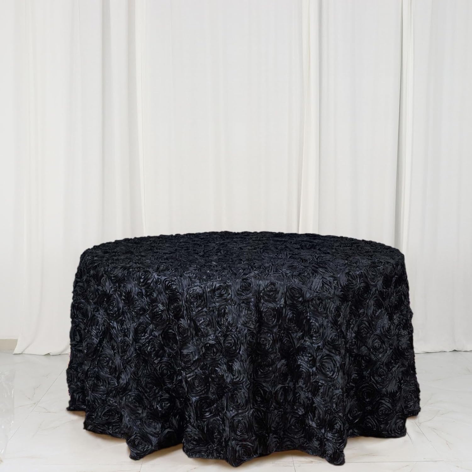 Efavormart 120" Wholesale Round Table Cover Black Grandiose Rosette 3D Satin Tablecloth for Wedding Party Event Decoration