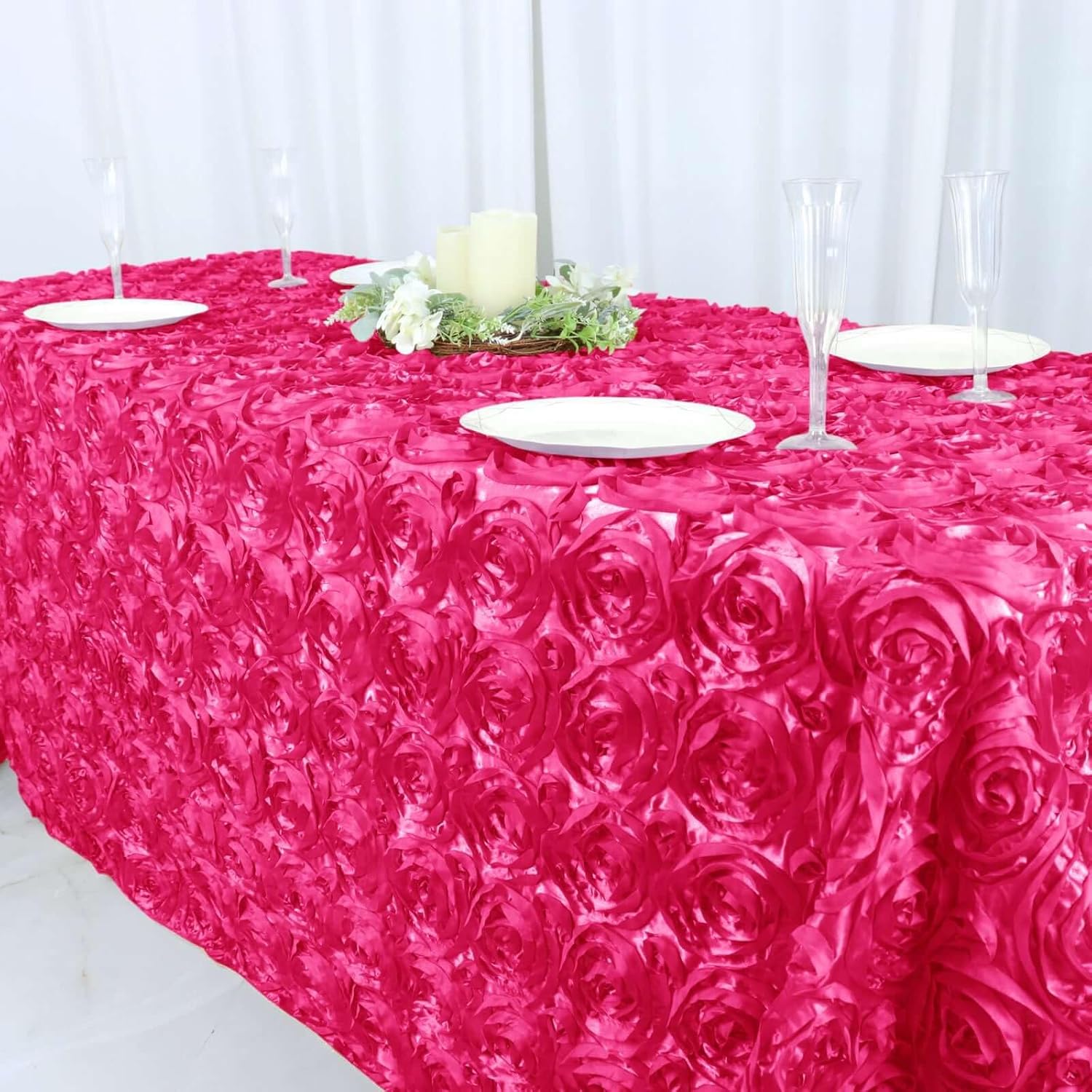 Efavormart 90"x132" Wholesale Rectangle Table Cover Fushia Grandiose Rosette 3D Satin Tablecloth for Wedding Party Event