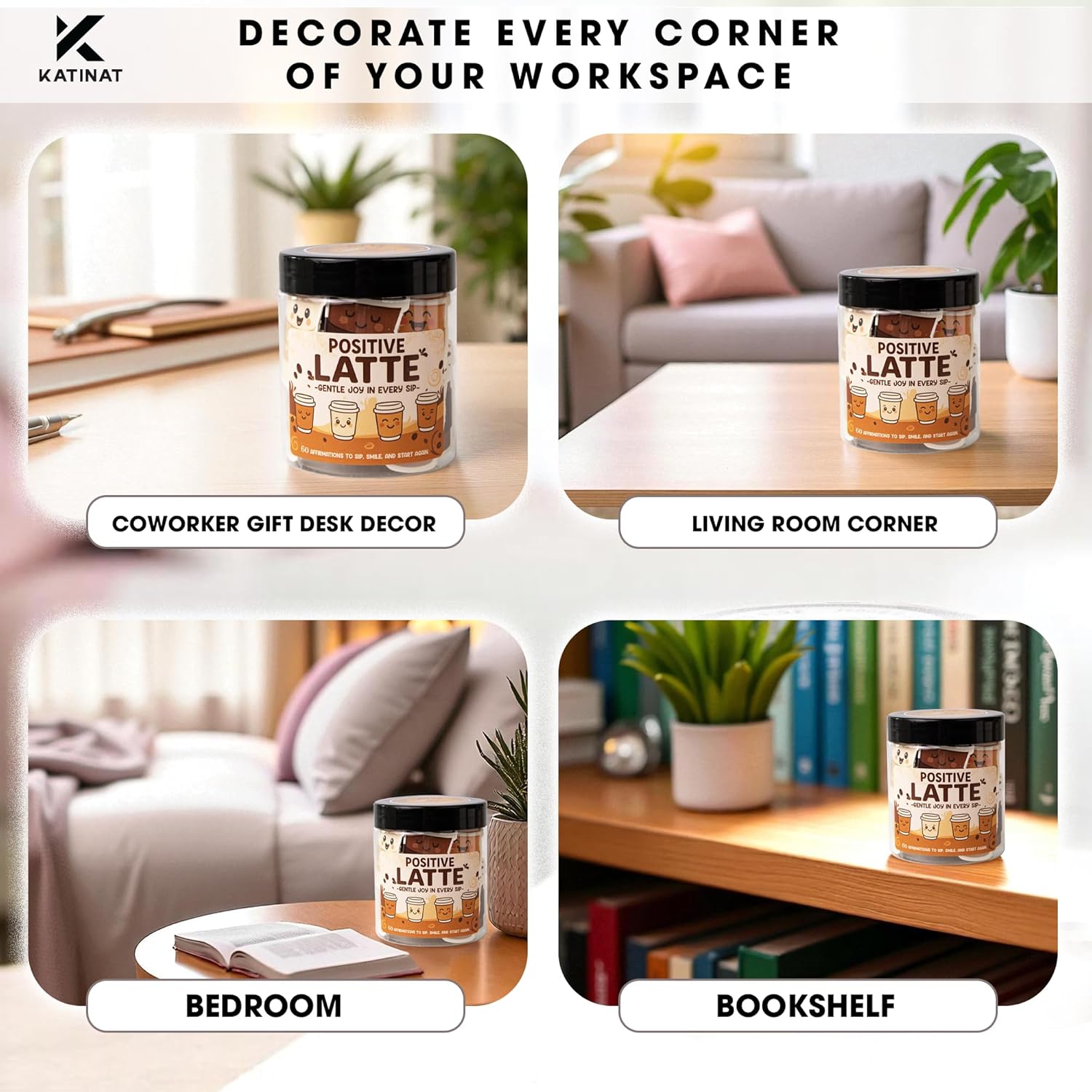 • β˜• Emotional Support Coffee in a Jar: 60 coffee-themed affirmation cards in latte cup shapes. A thoughtful, caffeine-free way to spread joy and encouragement every day.