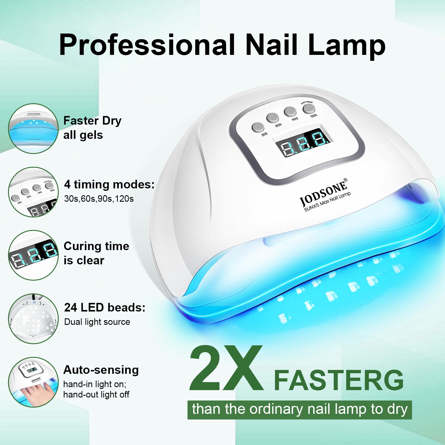• Quick Nail Lamp: It has an LCD display and 4 timer buttons to make it easier for you to use; smart sensor, just put your hand in and the lamp will automatically light up, let go and the lamp will automatically go off again. Suitable for professional beauty salon and personal home.