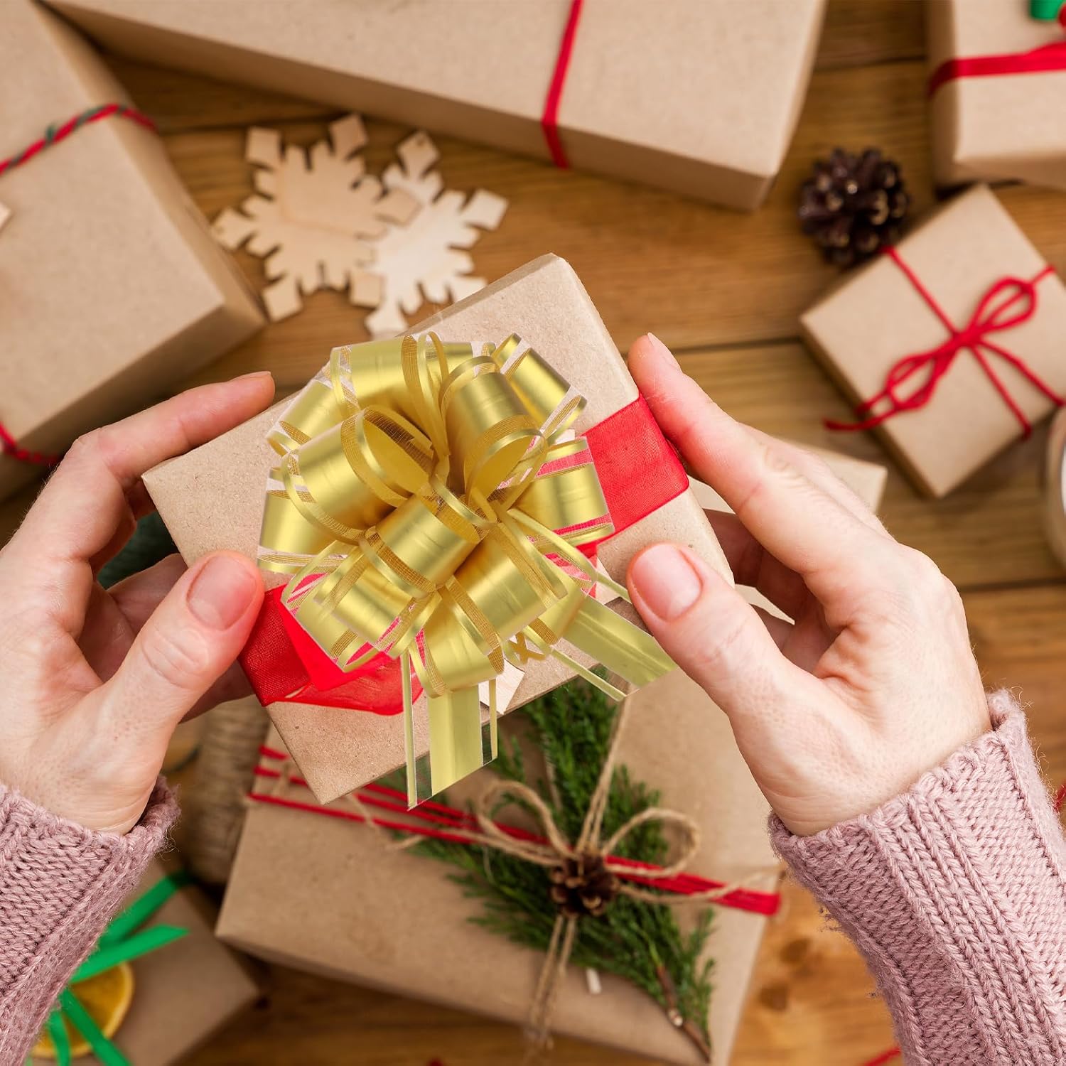 • Easy to install, just pull the 2 thin ribbons in reverse and the bow will automatically form. The Christmas gift bow is easy to install and fix, and the shape is not easy to spread. You can instantly get a beautiful ribbon flower, which can be used for gift packaging