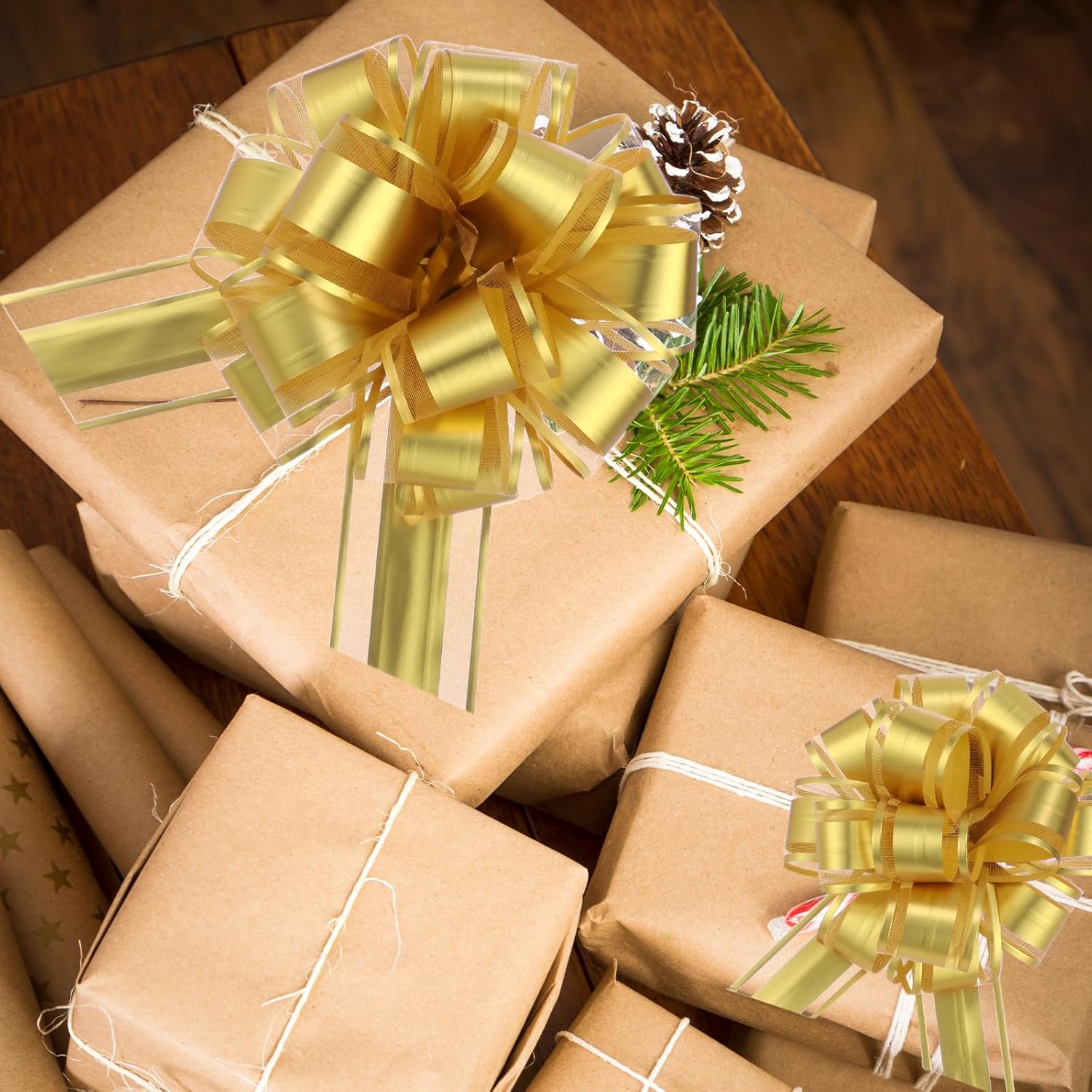 40 Pieces 6 Inches and 3 Inches Pull Bow Wrapping Pull Bow Ribbon Pull Bows for Wedding Baskets,Large Bows for Presents. (Gold)