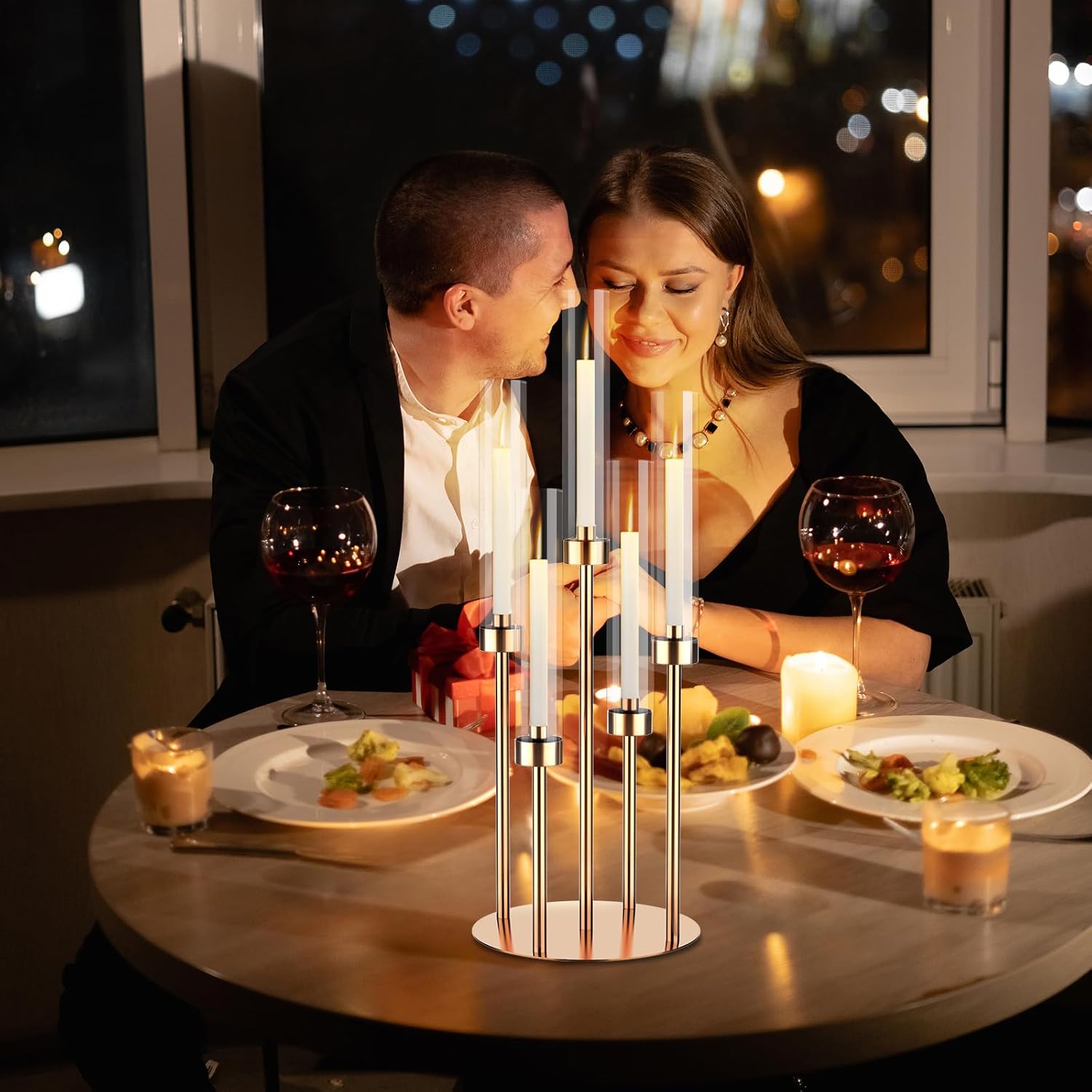 • EASY TO INSTALL: Our gold candle sticks holder is very easy to install, no tools needed, just fix the metal rod to the base, any fix the candle cup, and the installation is done. Suggest to use electronic candles, more safe