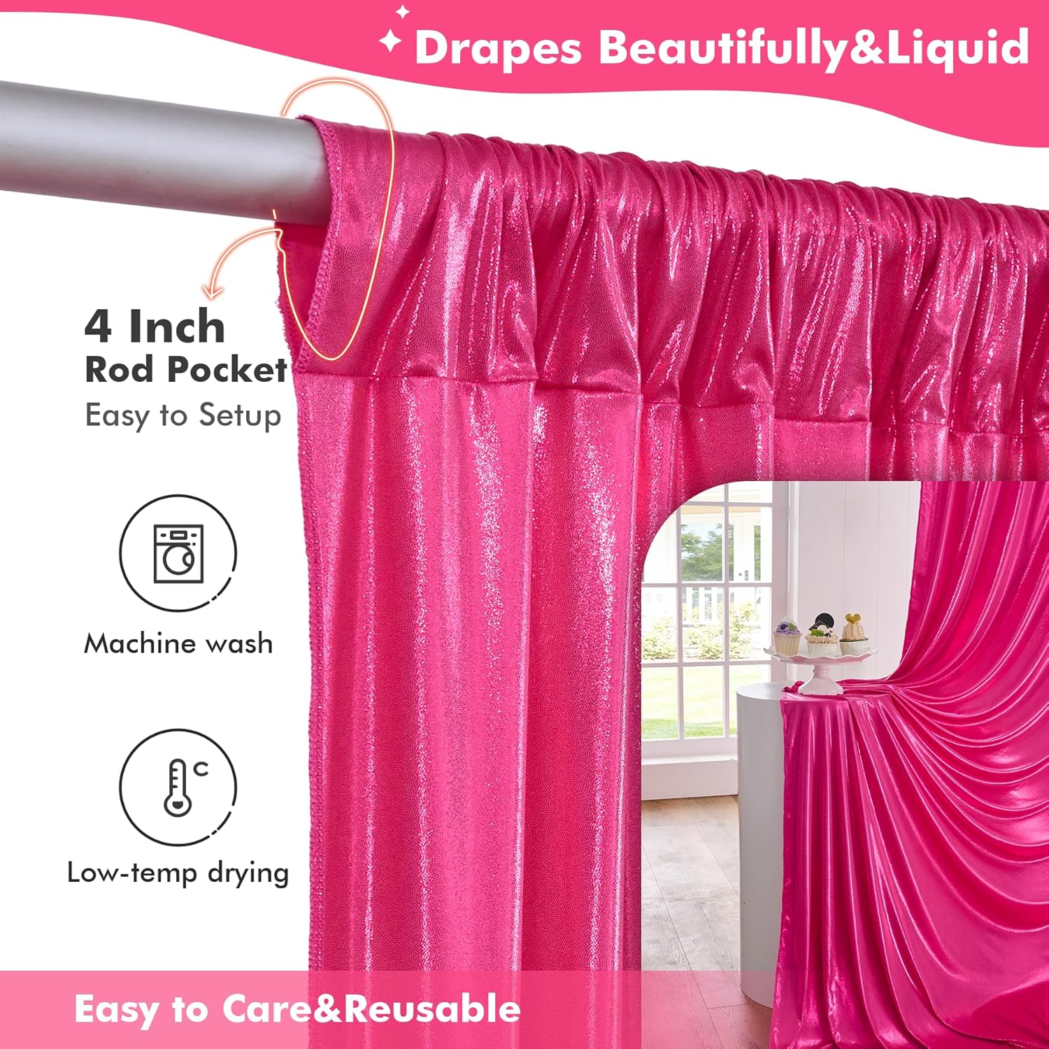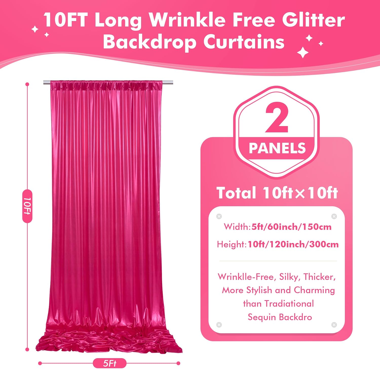 • Wrinkle-Free Backdrop Curtain - Our 10ft hot pink sequin glitter party background curtain panels are made of wrinkle-free material, which could be used without ironing. Let you make unforgettable memories for your family or your friends.