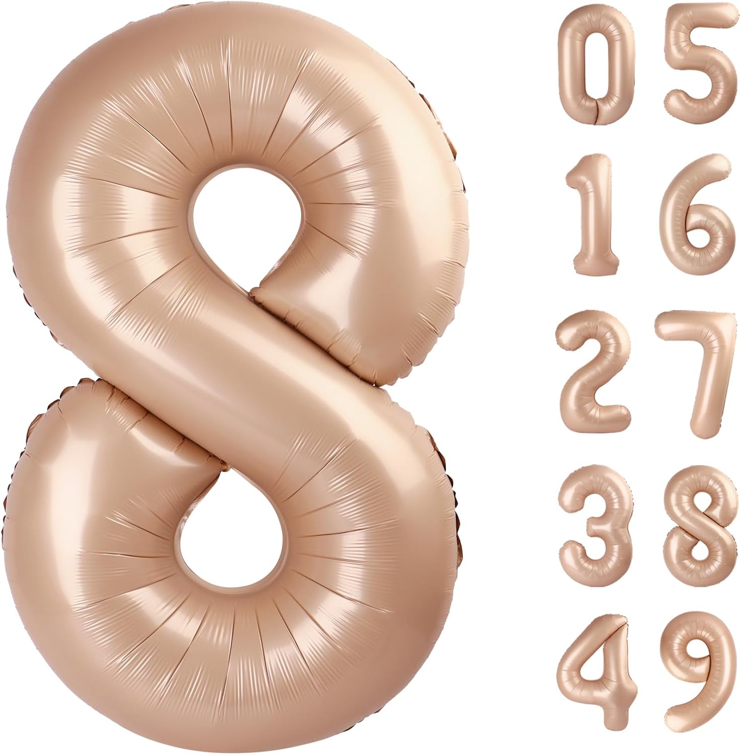 • 1.Make Party Charming with Light Brown Number Balloon: You will receive an uninflated 40 inch number 8 balloon. Big number balloons are always the best statement of romance and surprise. Light Brown balloons symbolize vitality exoticism, adding glamour to birthday parties.Bright metallic light brown and huge size make balloons a highlight of special parties.Choose one or more numbers from 0-9 birthday numbers,and use 8 18 28 38 48 58 68 78 80 98 balloon numbers to create a charming party!
