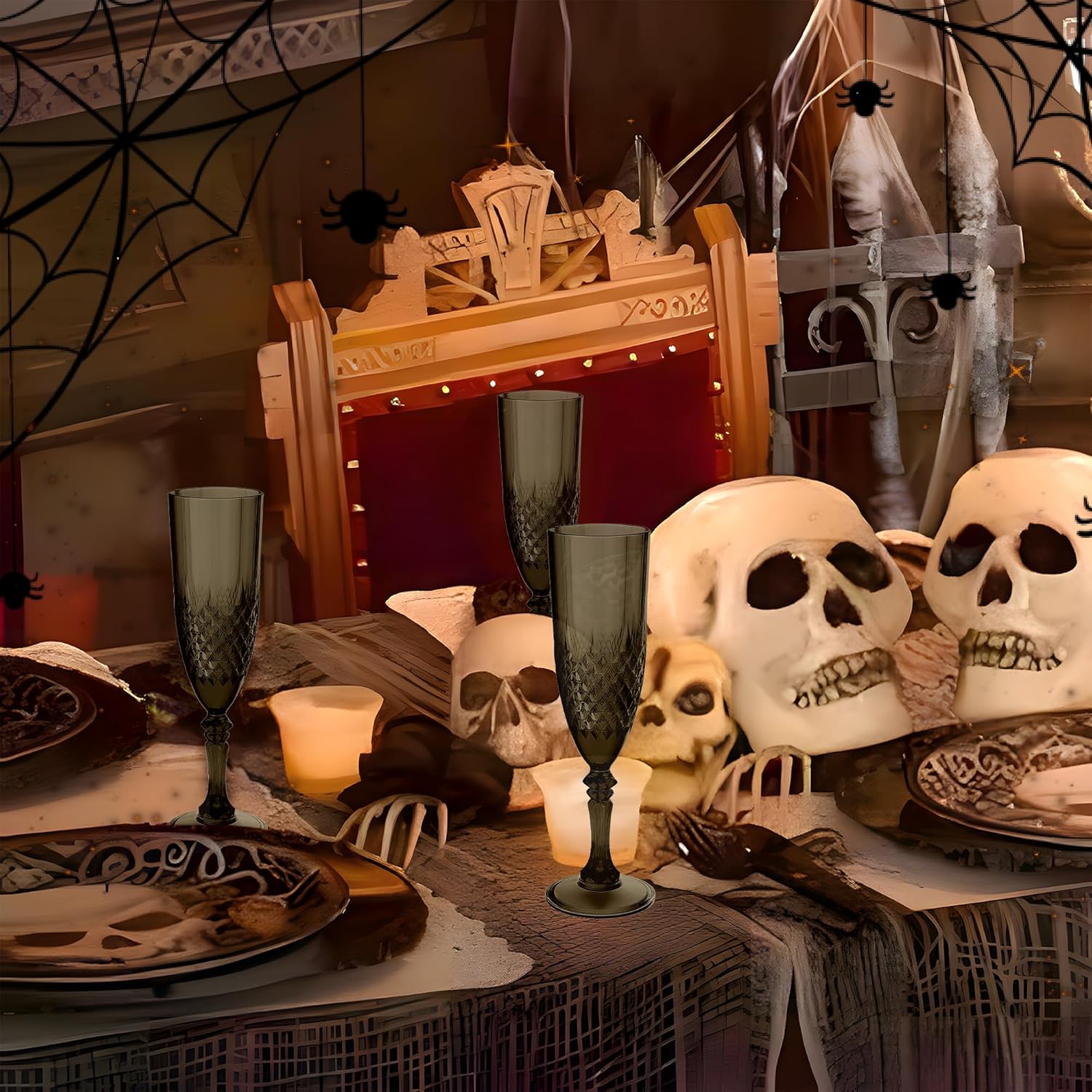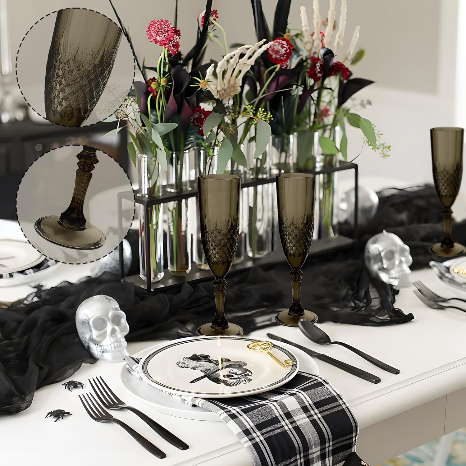 Plastic Champagne Flutes, 48PCS Black Wine Glasses Goblets Cups Reusable Flute, for Halloween Weddings Bachelor Parties Toasting and Events(48, Black)