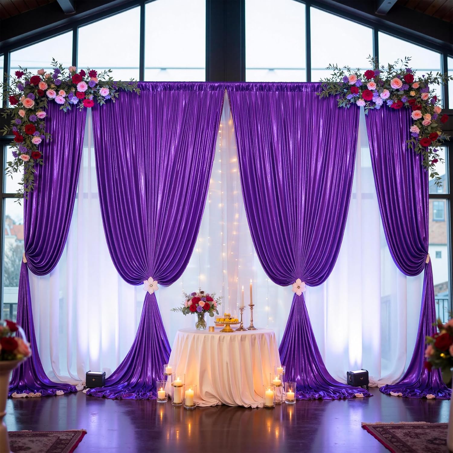 • 10FT Purple Backdrop Curtain - Wrinkle Free, Durable, Reusable. The purple photography drapes are wrinkle-free, soft touch feeling. You can use them with our another style of backdrop which has kinds of colors for choose.