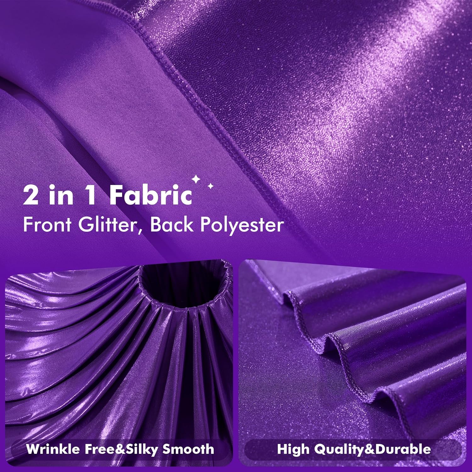• For Kinds of Occasions - Our 10ft purple sequin glitter polyester drapes are perfect for kinds of occassions. Such as wedding party, baby showers, birthday parties, photo booth,anniversary,graduation, home decoration and more.