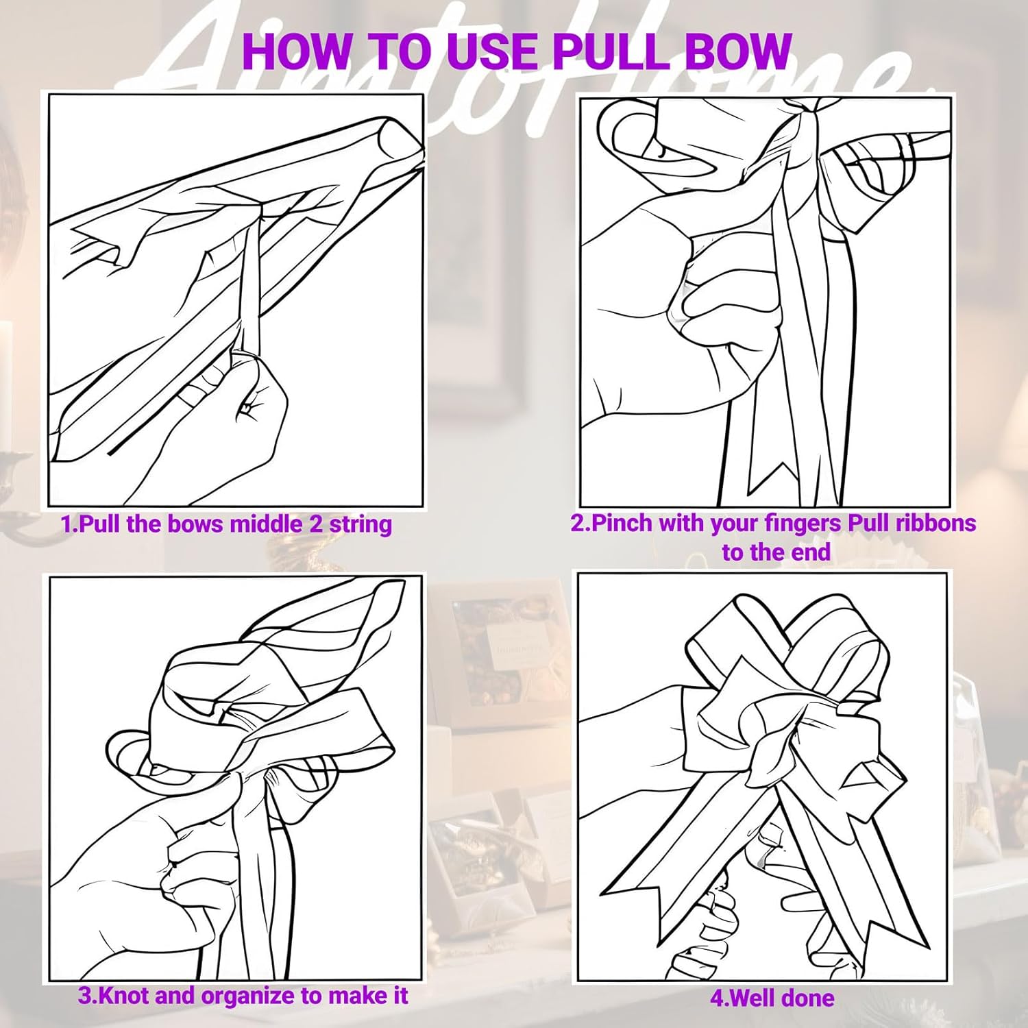 • GIFT BOWS EASY ASSEMBLY: Simple 4-step process to create beautiful bows - locate strings, pull drawstrings, secure with knot, and arrange into final shape