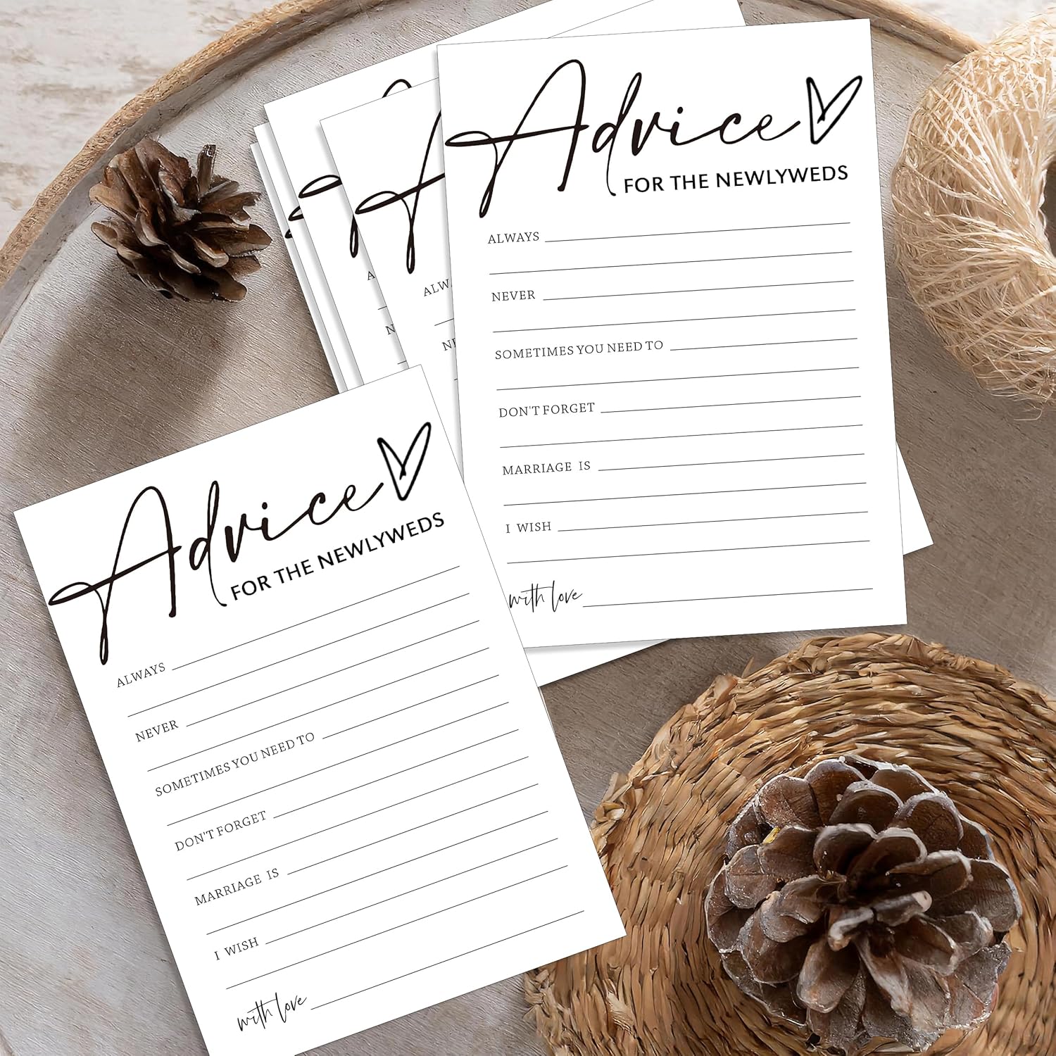 Wedding Advice Cards - Advice and Wishes for the Newlyweds Mr and Mrs Bride & Groom Perfect for Bridal Shower Wedding Games and Guest Book Alternative Pack of 25 Minimalist White 5x7 Inch Cards - A04
