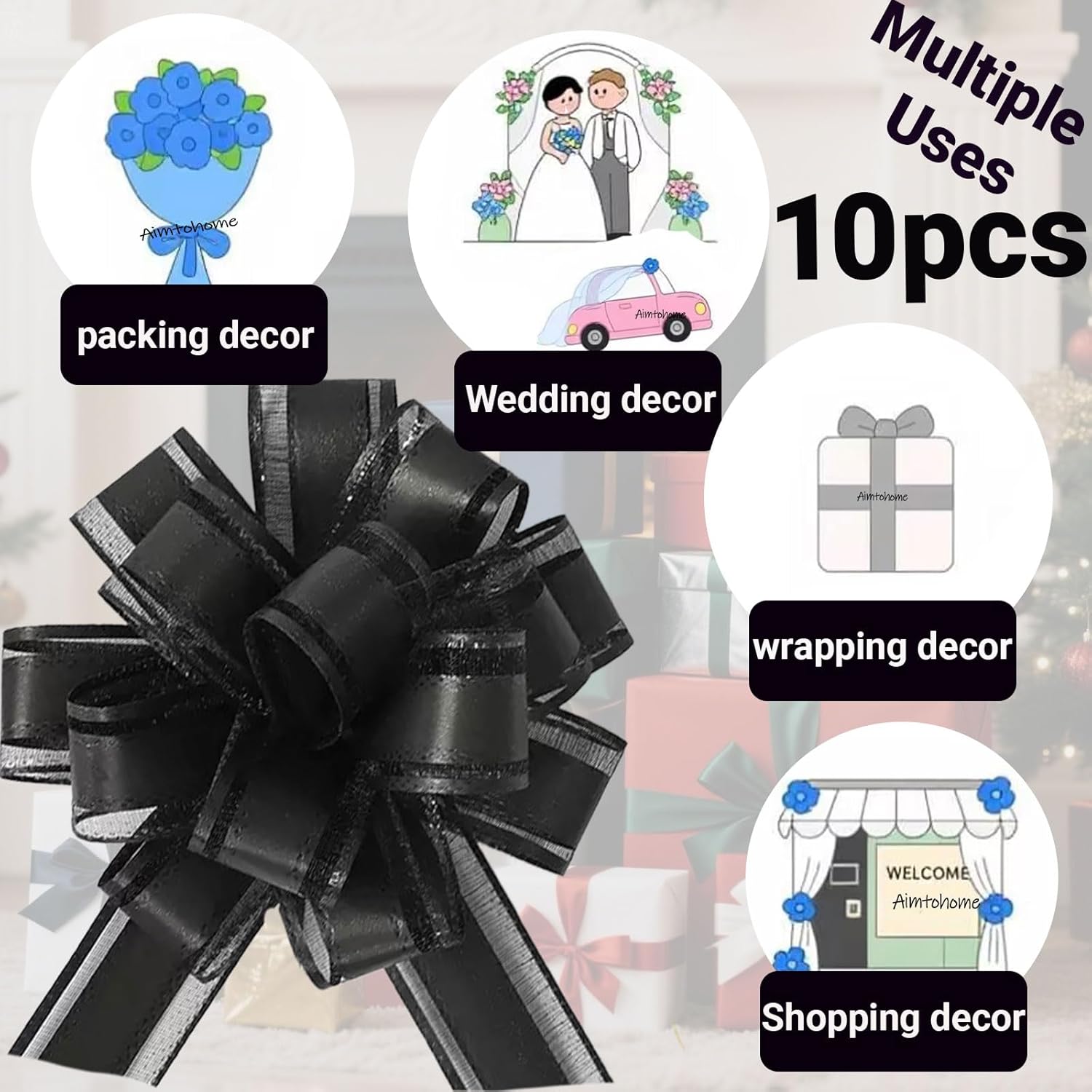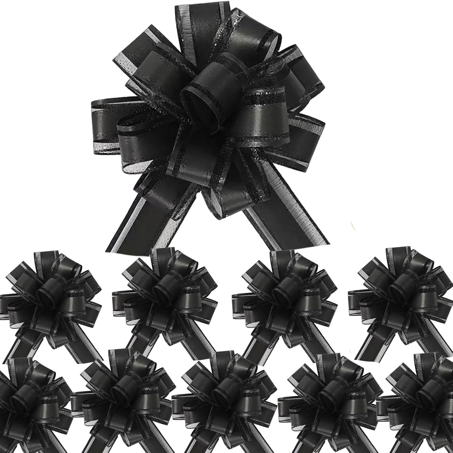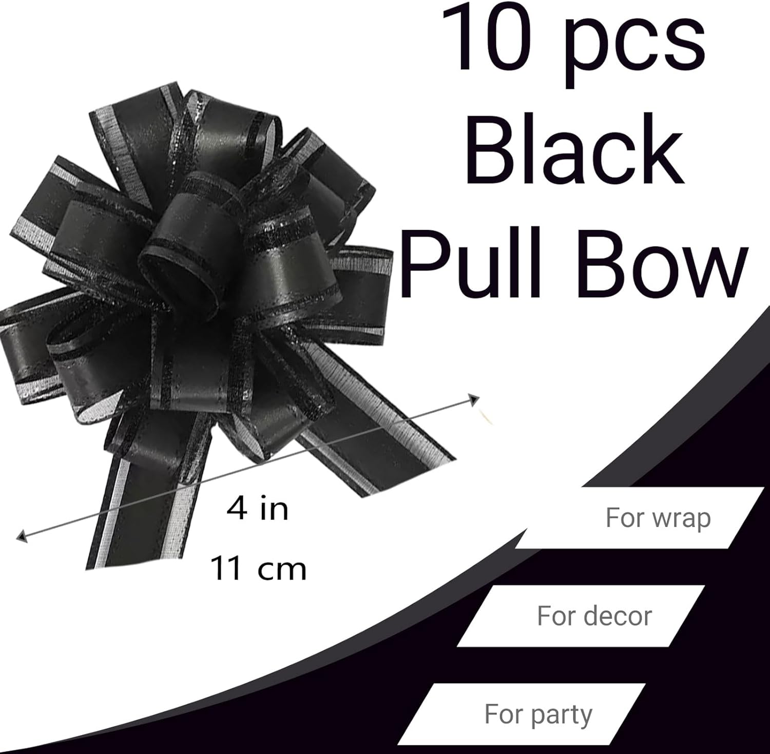 • PULL BOWS PACKAGE CONTENTS: Set of 10 elegant Black pull bows, each measuring 4 inches in diameter when fully assembled - perfect for gift wrapping and decorations