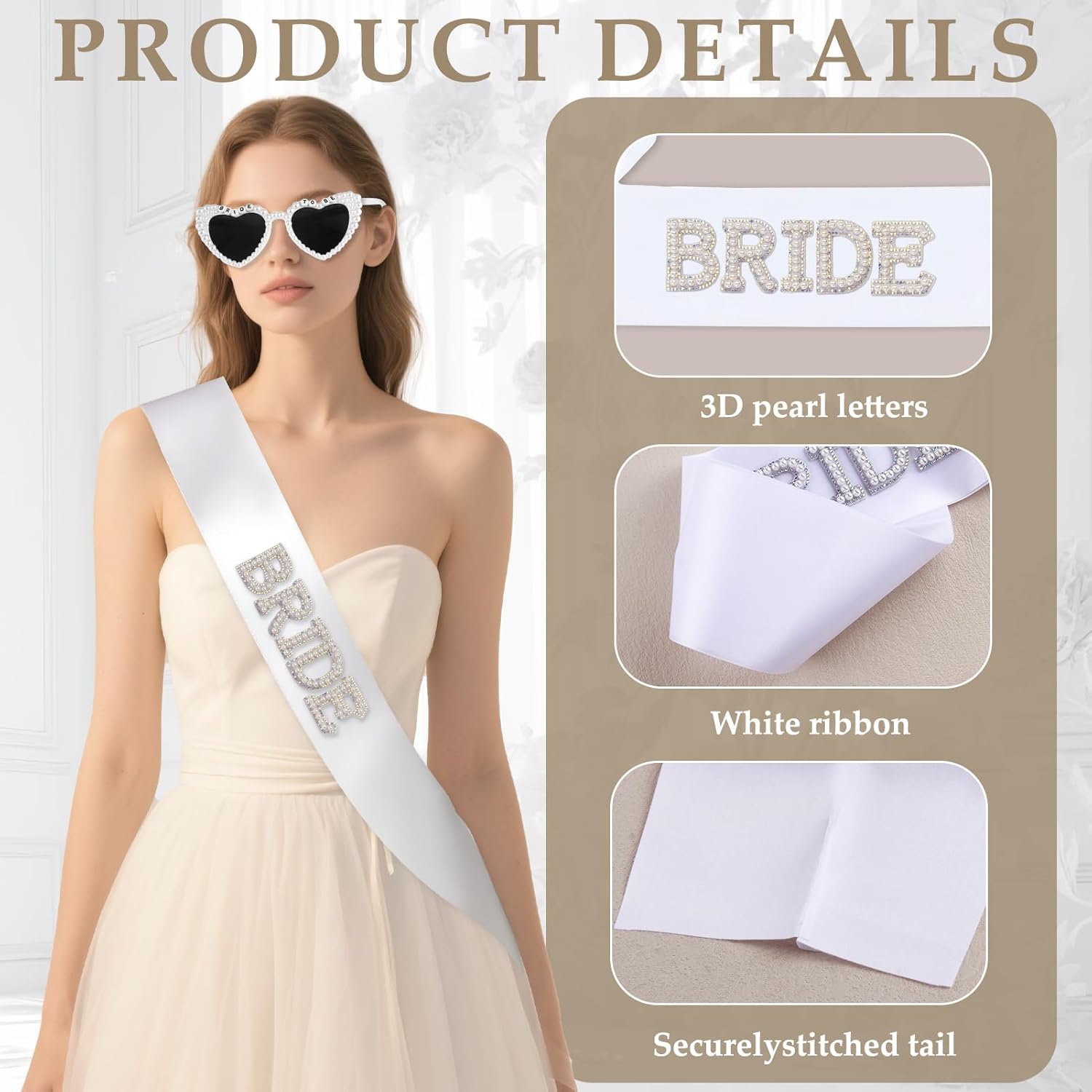 • Elegant & Eye-Catching Design: The bride to be veil features a delicate white bow for romantic flair, while the bride to be sash boasts pearl-BRIDE TO BE, creating instant visual focus and sophisticated charm.