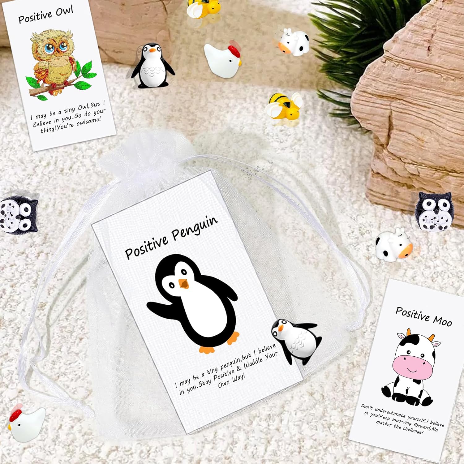 • โœ… Employee Thank You Gifts Bulk Set - We will provide you with a total of 20 pieces of employee appreciation gifts, including 20 positive resin animals, 20 cards and 20 organza bags;our group gifts for coworkers/back to school gifts for students are designed 5 different resin accessories with different cards,including owl, cow, bee, rooster, penguin with funny pun quotes,to express your gratitude and encouragement; Sufficient quantities can easily meet your gift-giving needs.