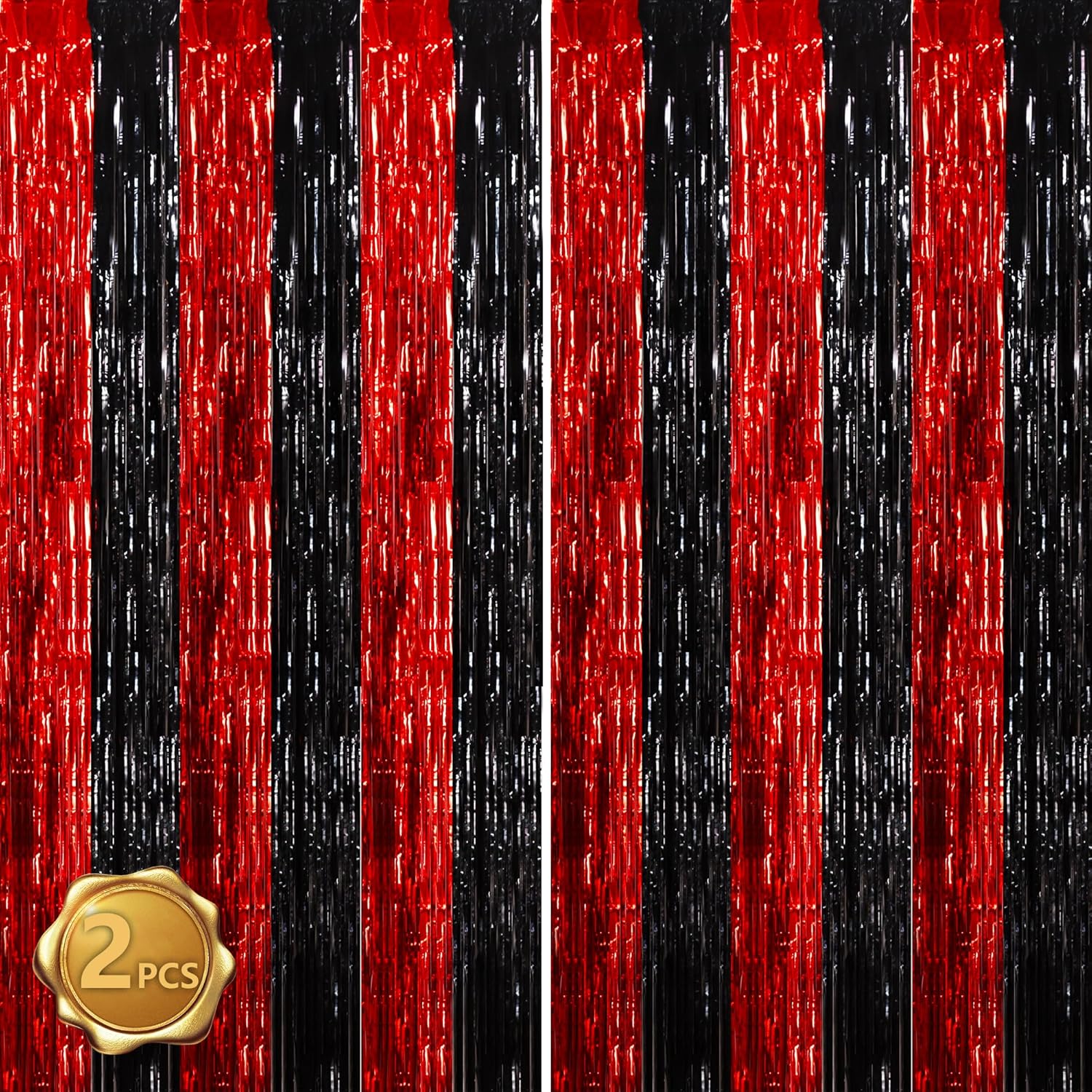 BEISHIDA Red Black Door Streamers Backdrop Foil Fringe Tinsel Party Streamers Curtains Photo Backdrop - 2Pcs for Birthday Graduation Bachelorette Halloween New Year Party Decoations