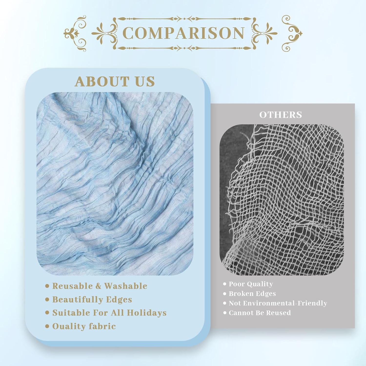 Le courant 6pcs 10Ft Cheesecloth Table Runner, Rustic Boho Gauze Cheese Cloth Runner Table Runner for Weddings Bridal Baby Shower Birthday Holiday Parties Home Decor, Baby Blue