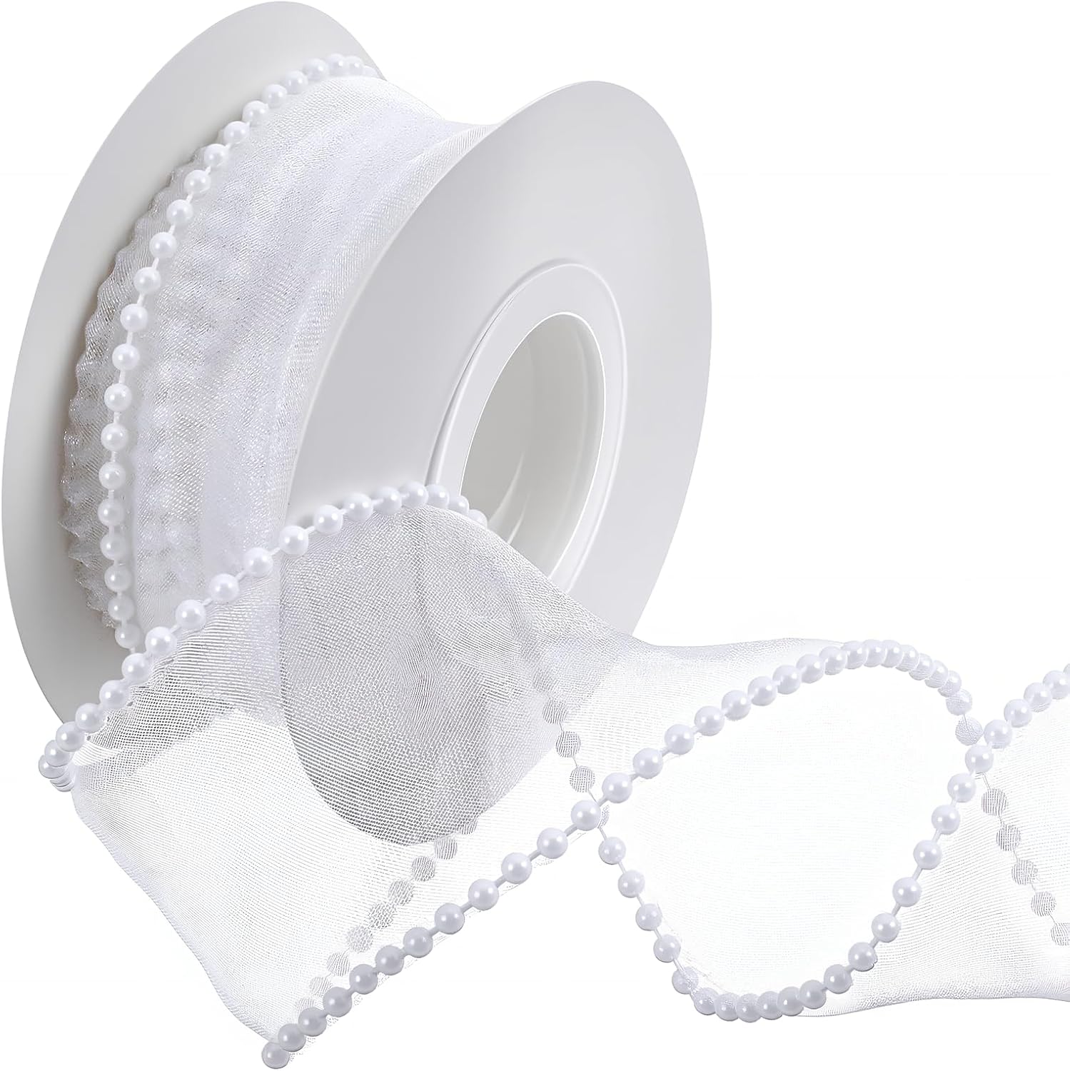 • Material: Crafted from high-quality sheer fabric with pearl and wire edges, this white ribbon is easy to shape, allowing you to create structured bows and loops effortlessly