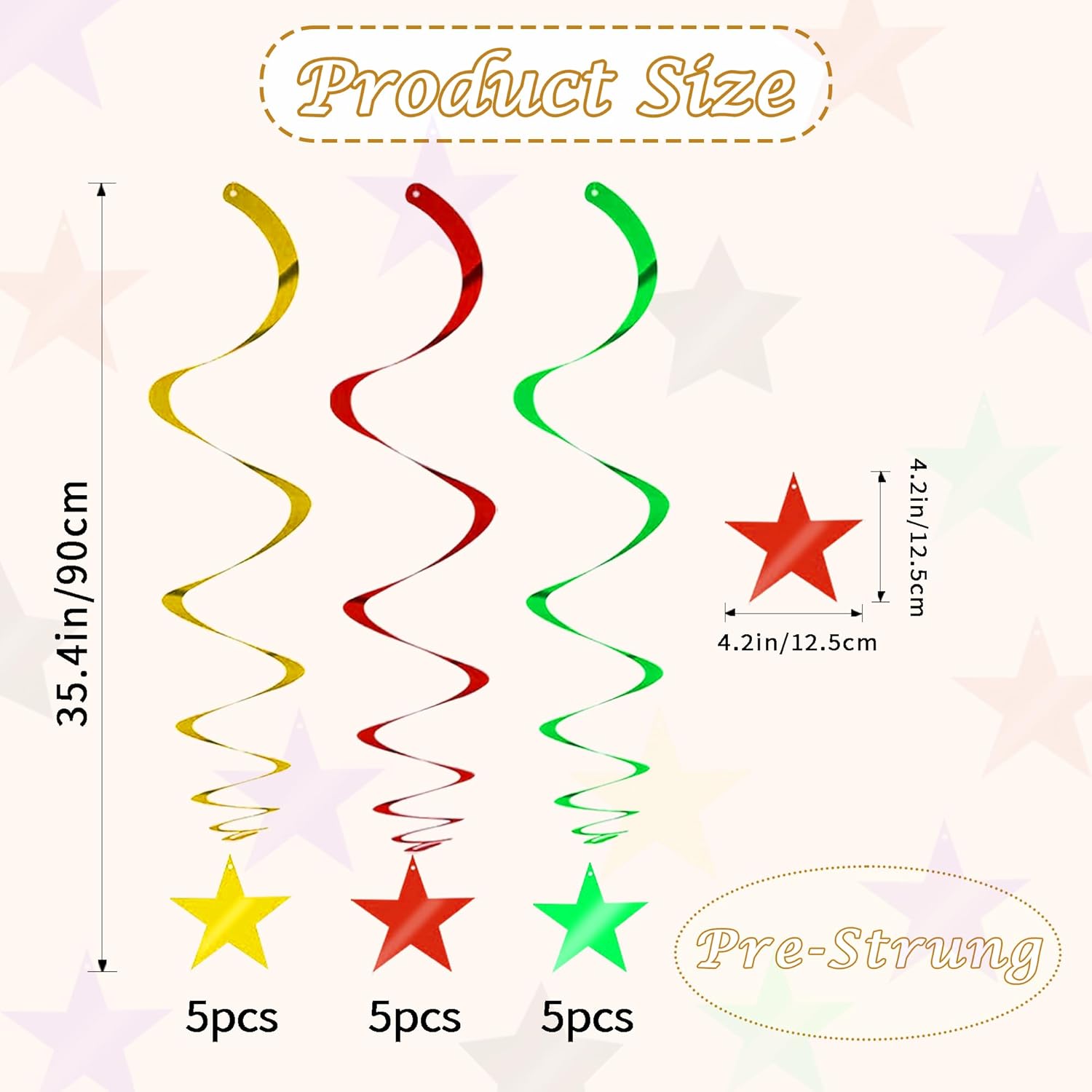 • 【Package include】A total of 15 pcs hanging swirl decorations, including 15 double swirls and 15 swirls with PVC star. There are 15 strings in total, each of which is connected with a double swirls and a PVC star. Flexible swirls, hanging length can extend to approx 36"/91cm long.