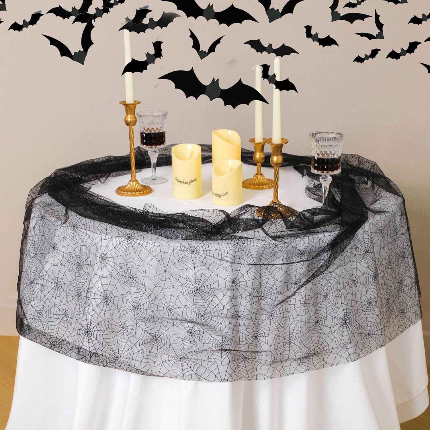 • 1-Pack 27.5"x120" Black Spiderweb Table Runners for Halloween, Birthday Parties & Daily Use. Fits Rectangular, Round, and Banquet Tables