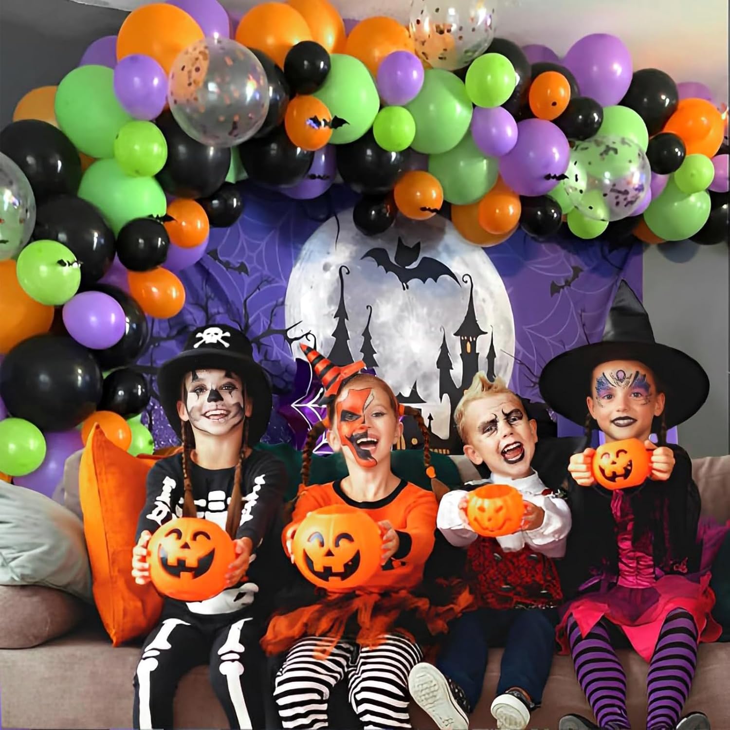 Patimate Halloween Decorations Balloons Set, 50 pcs 12 inch Purple Green Orange Black Confetti Latex Balloons Kit for Halloween Baby Shower Birthday Bachelorette Trick or Treat Party Supplies