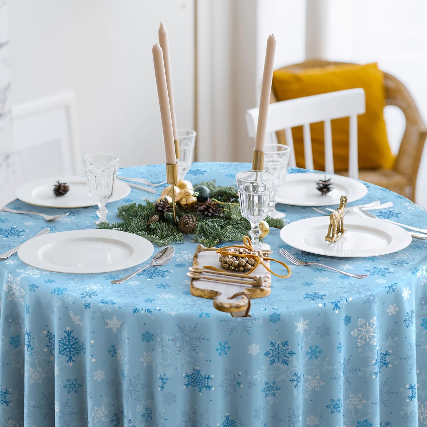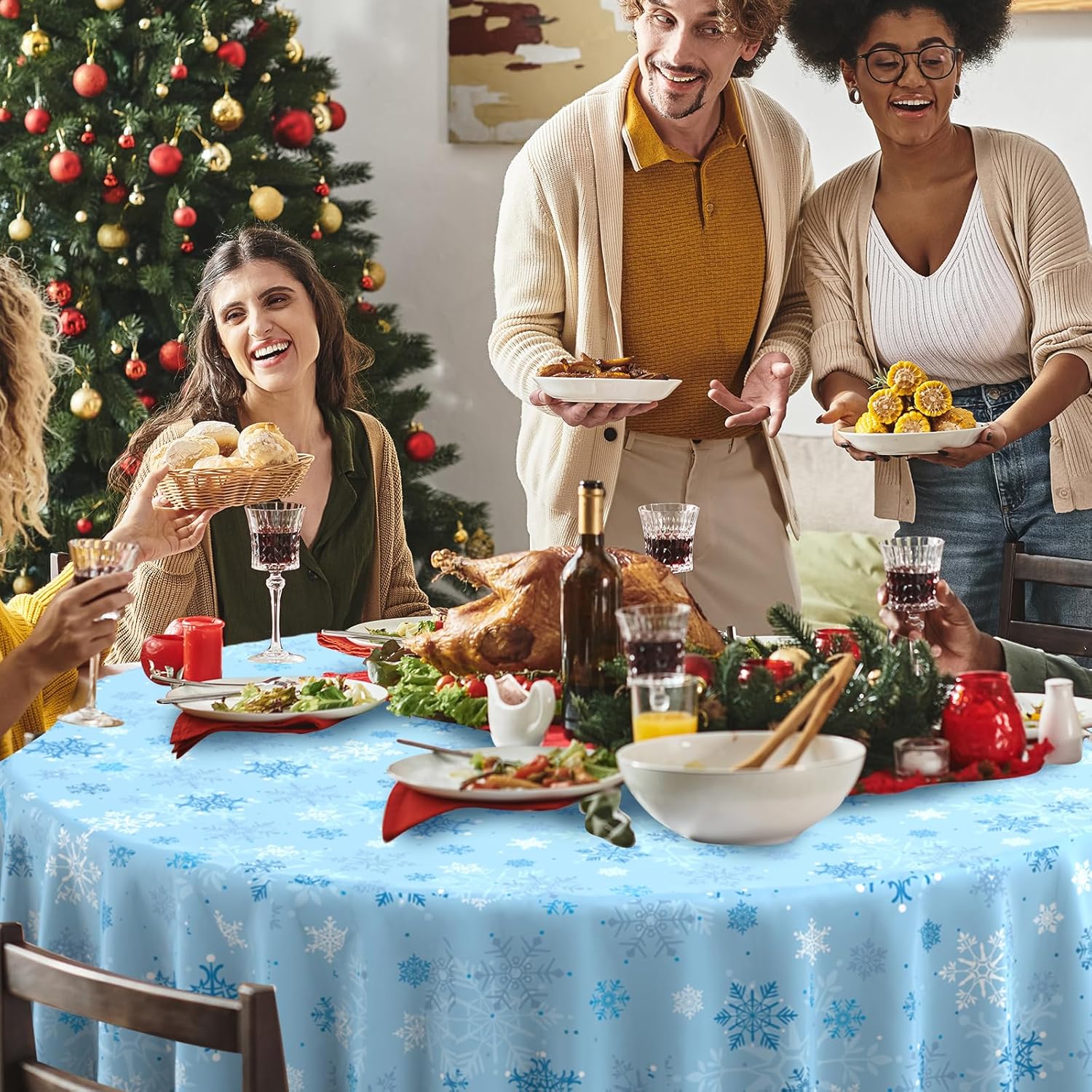 • Extra large size: these white light blue snowflake Christmas party tablecloth measures approx. 84 inch, which fits for various-sized tables that can accommodate 8-10 people, It’s large enough for your to hold a winter holiday and Christmas theme party with your family and friends to share happiness