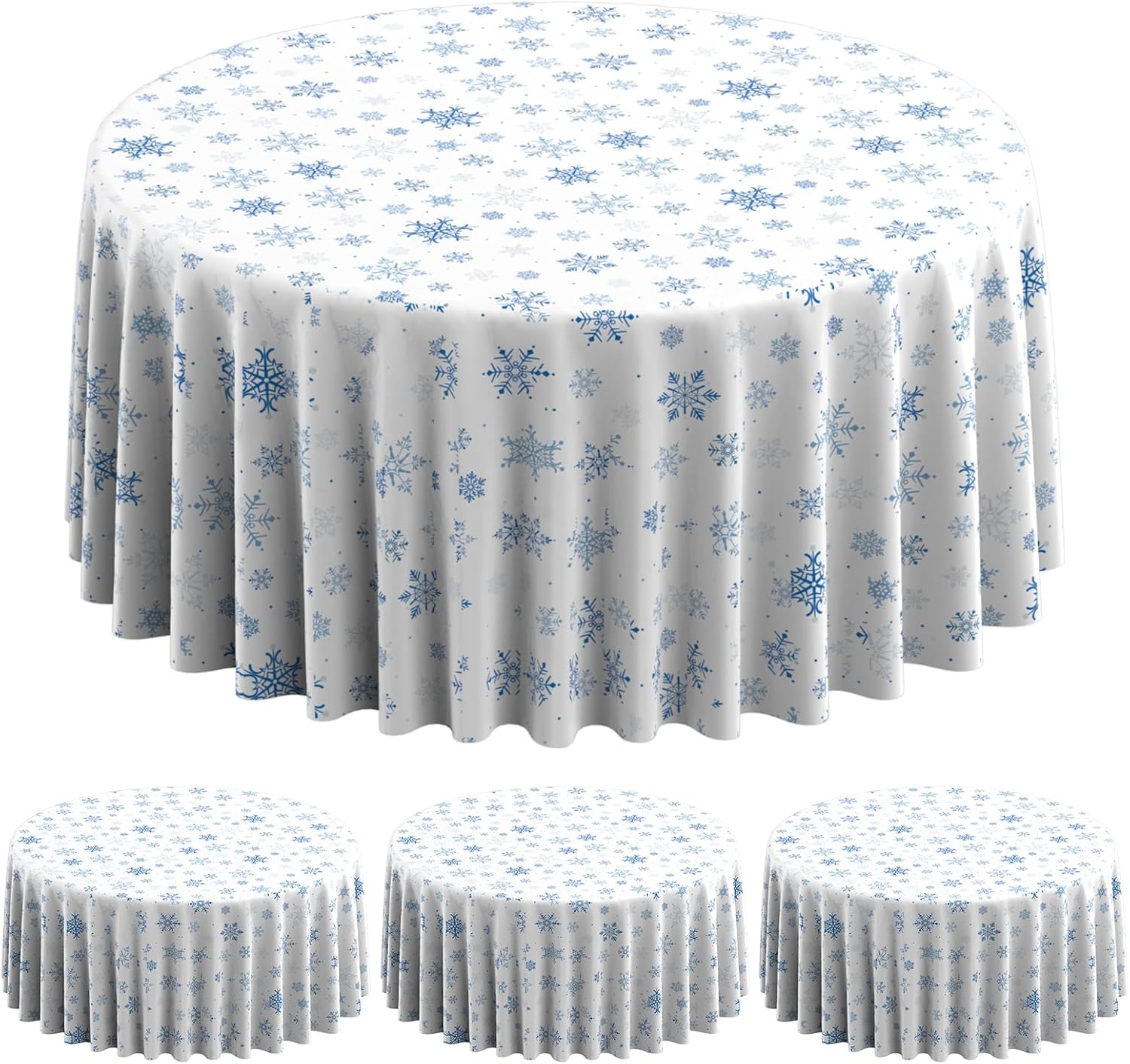 • What will you receive: 3 pieces round Christmas party tablecloth,all over printed with blue snowflake patterns on white backdrop,ideal for decorating your winter holiday and Christmas party supplies and decorations