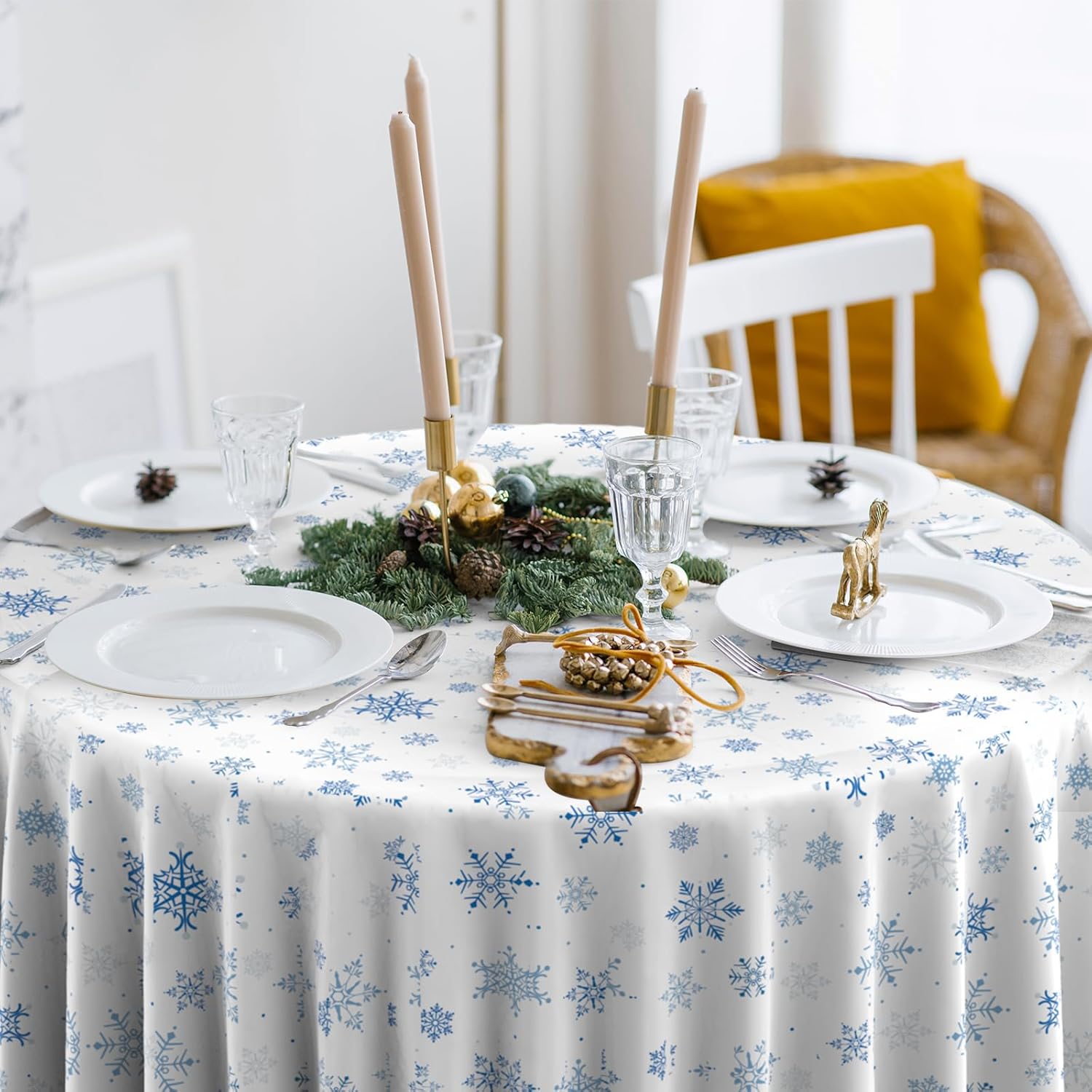 • Extra large size: these blue snowflake Christmas party tablecloth measures approx. 84 inch, which fits for various-sized tables that can accommodate 8-10 people, It’s large enough for your to hold a winter holiday and Christmas theme party with your family and friends to share happiness