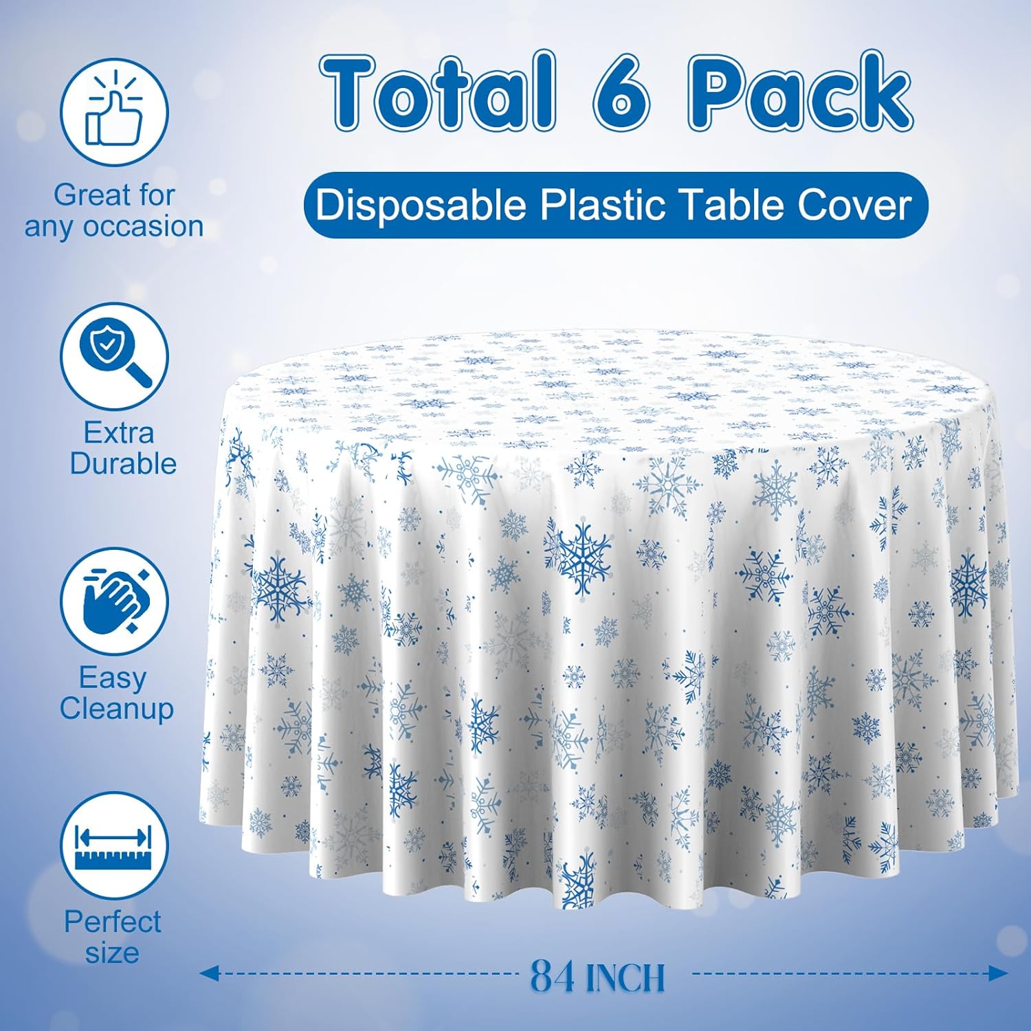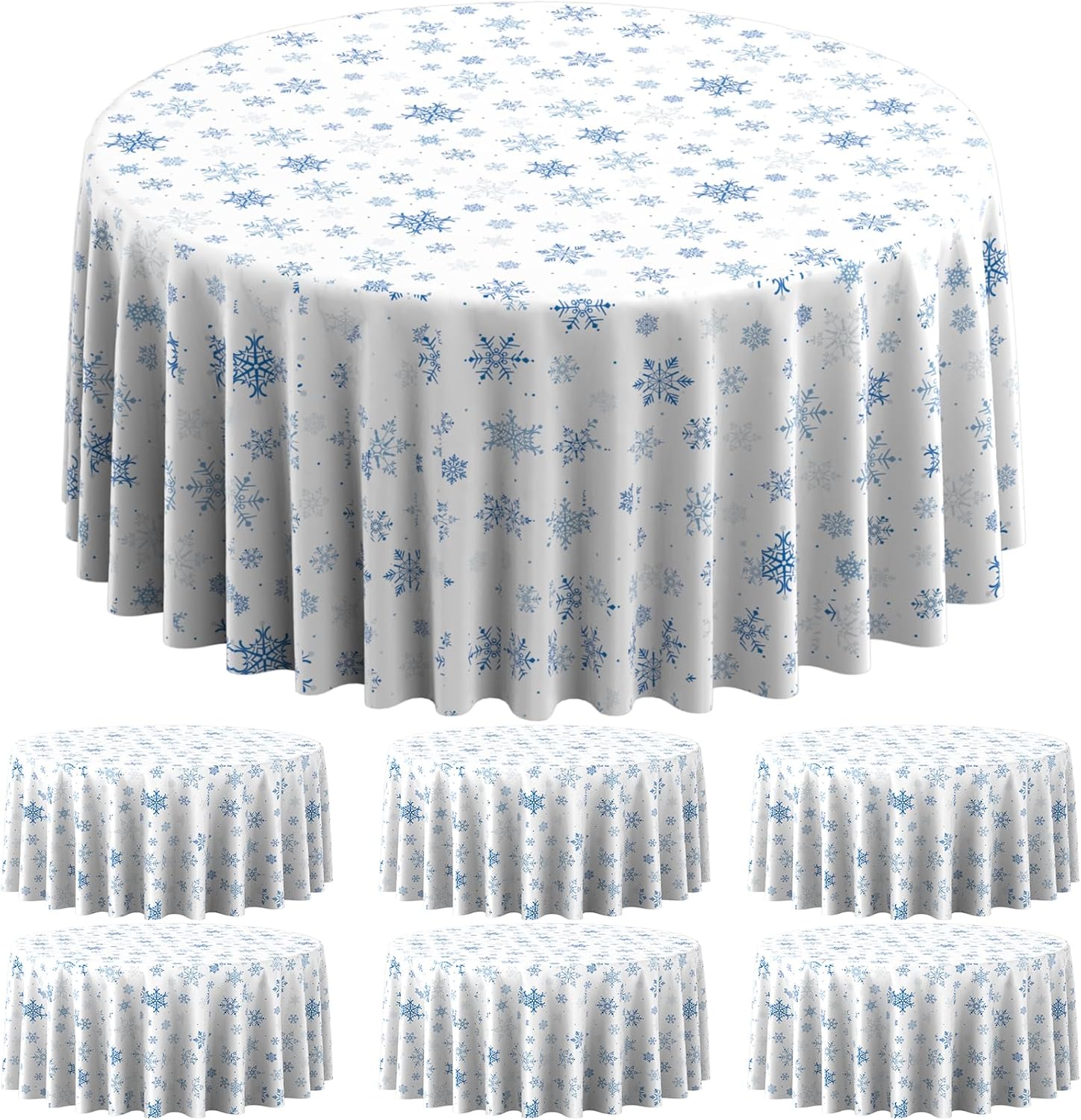 • What will you receive: 6 pieces round Christmas party tablecloth,all over printed with blue snowflake patterns on white backdrop,ideal for decorating your winter holiday and Christmas party supplies and decorations
