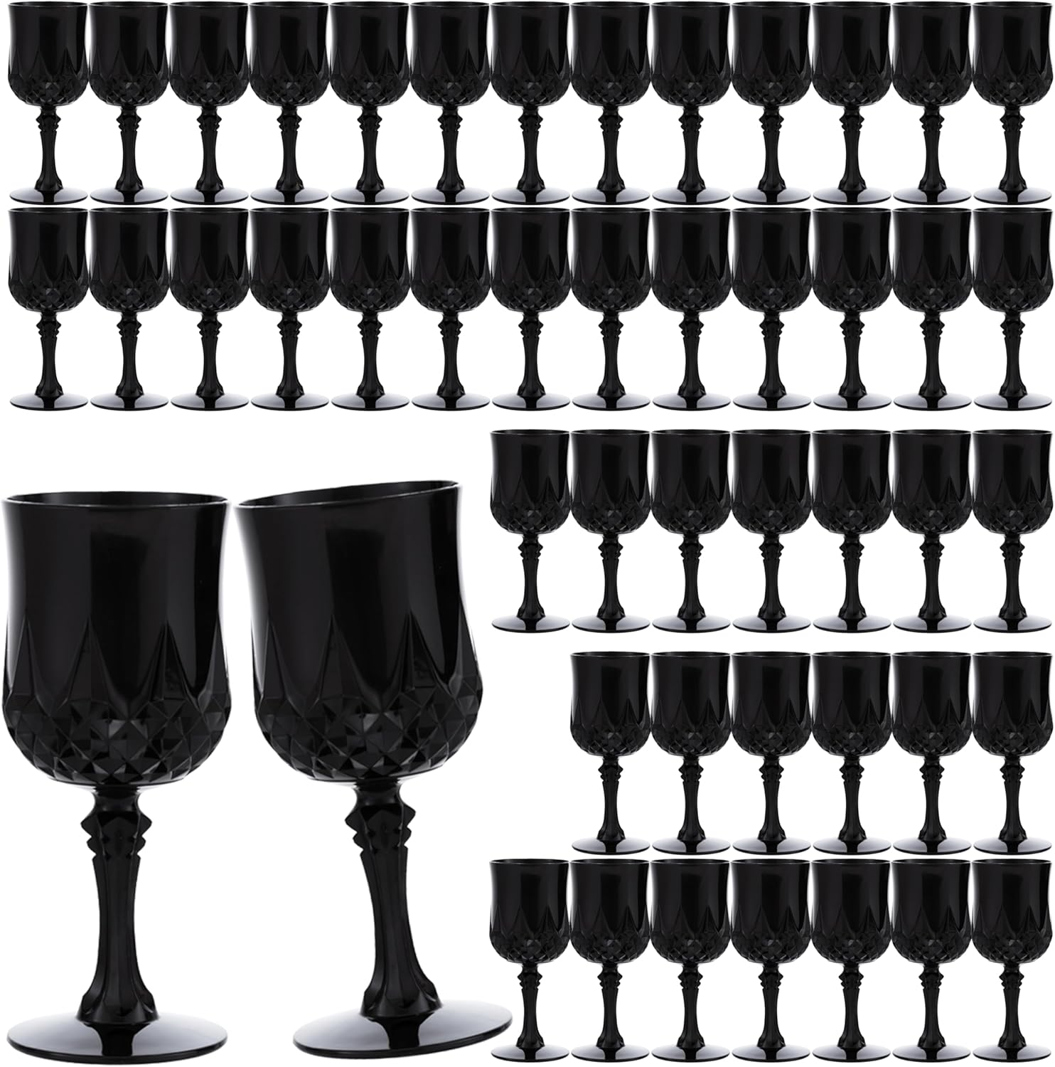 JLYLOL Plastic Vintage Wine Glasses 7OZ Plastic Goblets Vintage Drinking Glasses 48PCS Retro Wedding Glassware Water Goblets Reusable Drinking Cups for Party,Reception,Celebration,Bar,Whiskey(Black)
