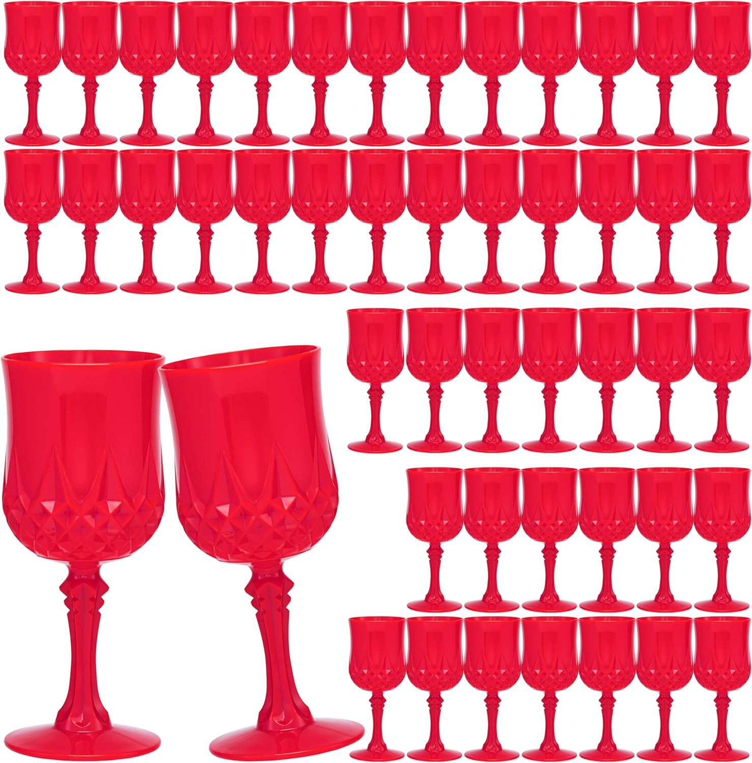 JLYLOL Plastic Vintage Wine Glasses 7OZ Plastic Goblets Vintage Drinking Glasses 48PCS Retro Wedding Glassware Water Goblets Reusable Drinking Cups for Party,Reception,Celebration,Bar,Whiskey(Red)