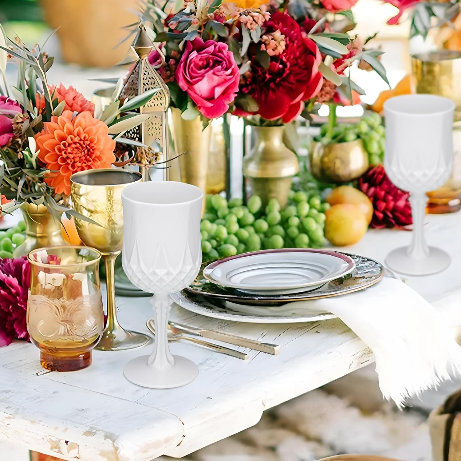 JLYLOL Plastic Vintage Wine Glasses 7OZ Plastic Goblets Vintage Drinking Glasses 12PCS Retro Wedding Glassware Water Goblets Reusable Drinking Cups for Party,Reception,Celebration,Bar,Whiskey(White)