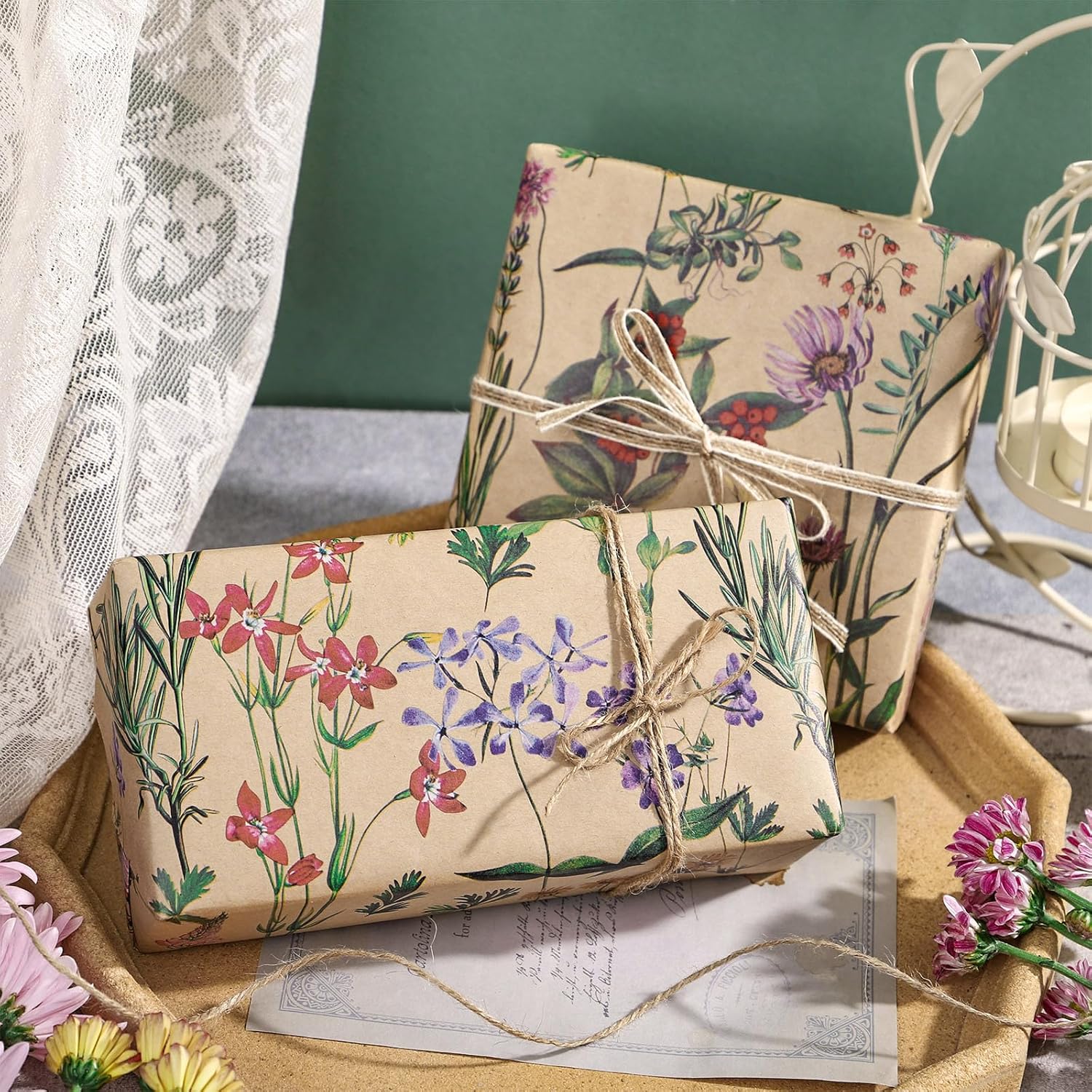 RUSPEPA Wildflower Floral Wrapping Paper Roll for Women, 17 Inches x 9.8 Feet, Mini Roll, Herbal Kraft Wrapping Paper for Christian Gifts, Birthdays, Weddings, Bridal Shower and Engagement