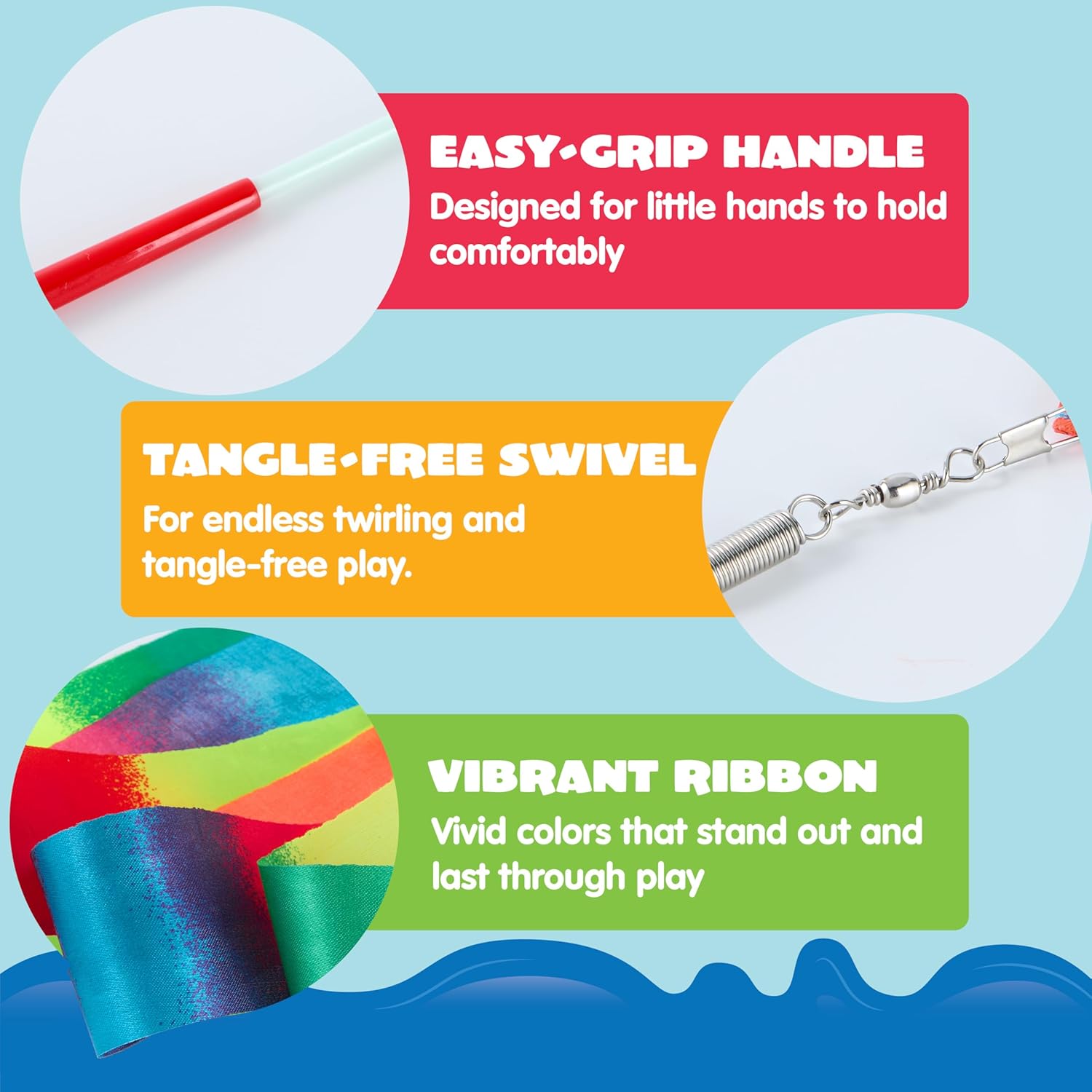• PREMIUM QUALITY FOR ENDLESS PLAY! The smooth wooden stick is easy for little hands to hold, and the soft, silky ribbon is both lightweight and durable. The ribbon is securely attached, ensuring it can withstand countless hours of twirling and dancing.