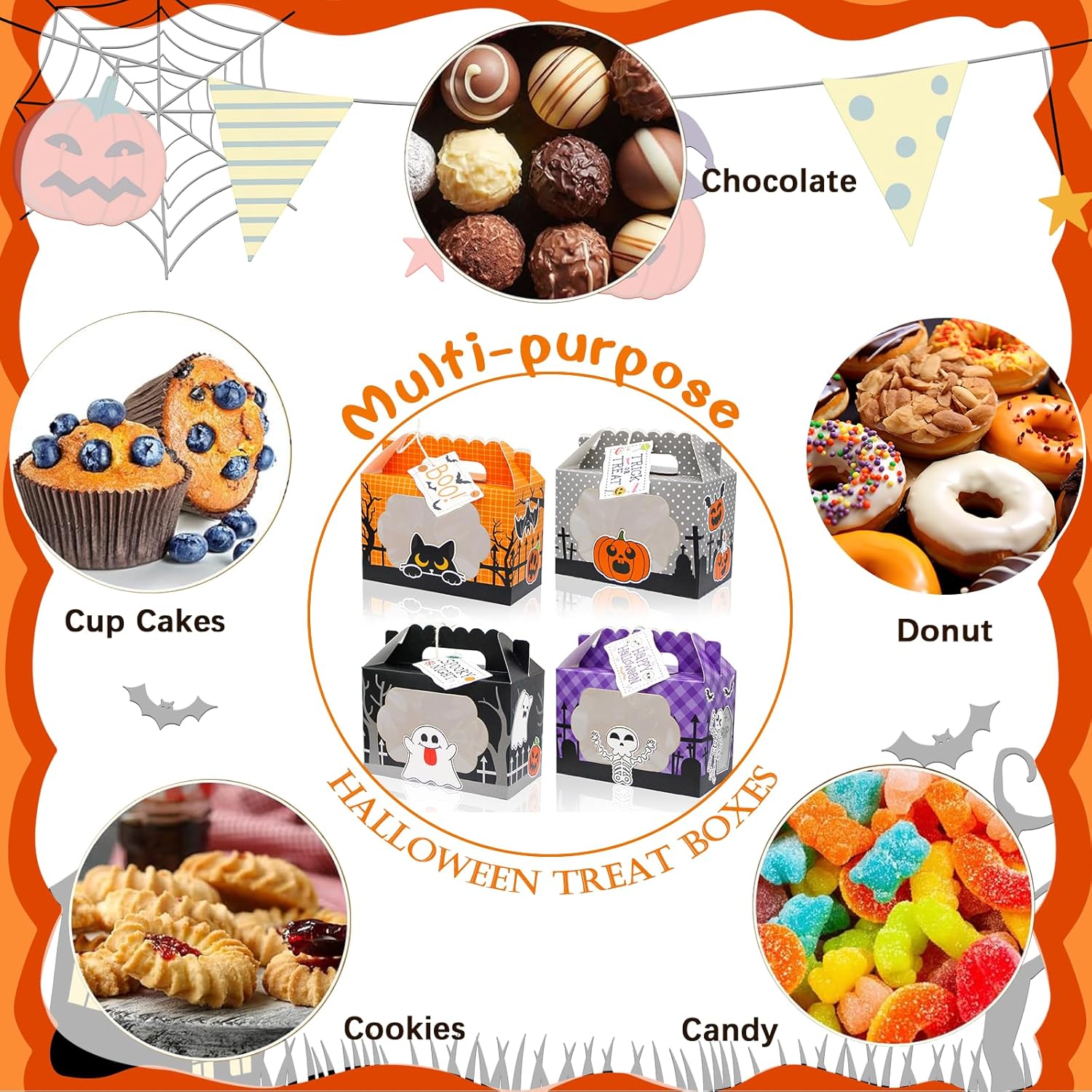 • 【Perfect for Party Favors】Hand out these Halloween treat boxes as party favors to delight your guests. They are an excellent way to distribute homemade or store-bought goodies, ensuring everyone leaves with a memorable and delicious token of your event. Their eye-catching designs and practical use make them a hit at any gathering.